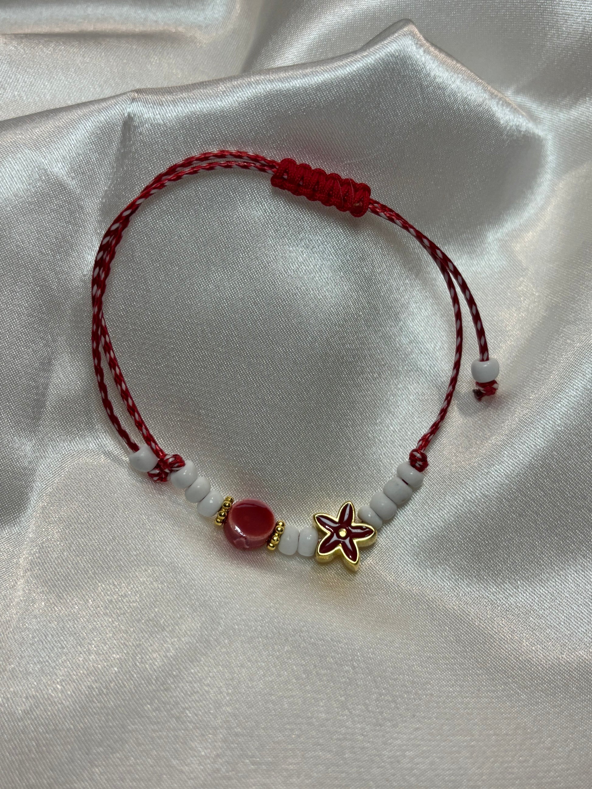 Μαρτάκι με γυάλινα στοιχεία και ατσάλινο λουλουδάκι.