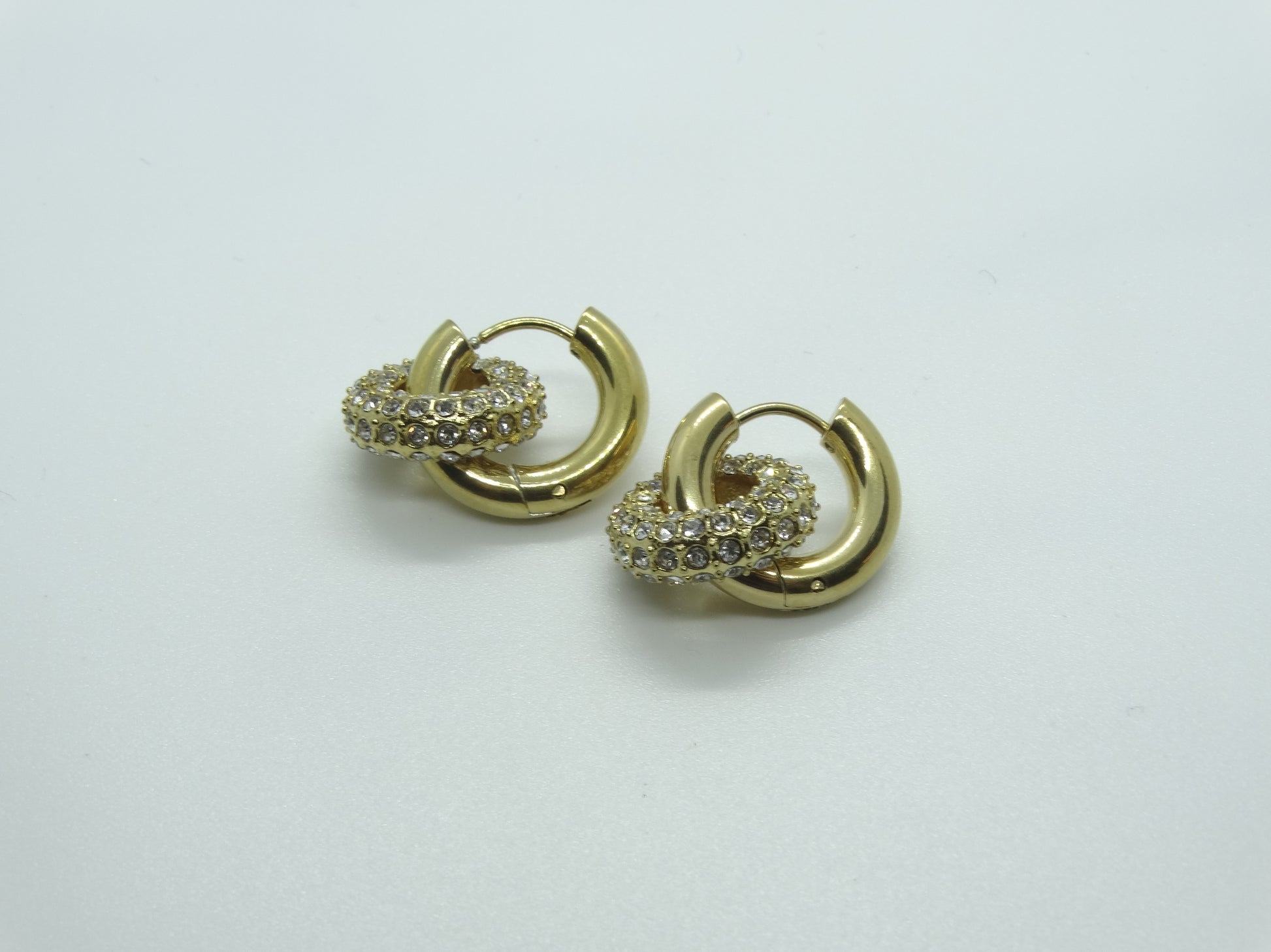 Διπλά χρυσά κρικάκια. Το ένα είναι απλό και φοριέται και μόνο του, το δεύτερο είναι γεμάτο ζιργκόν.