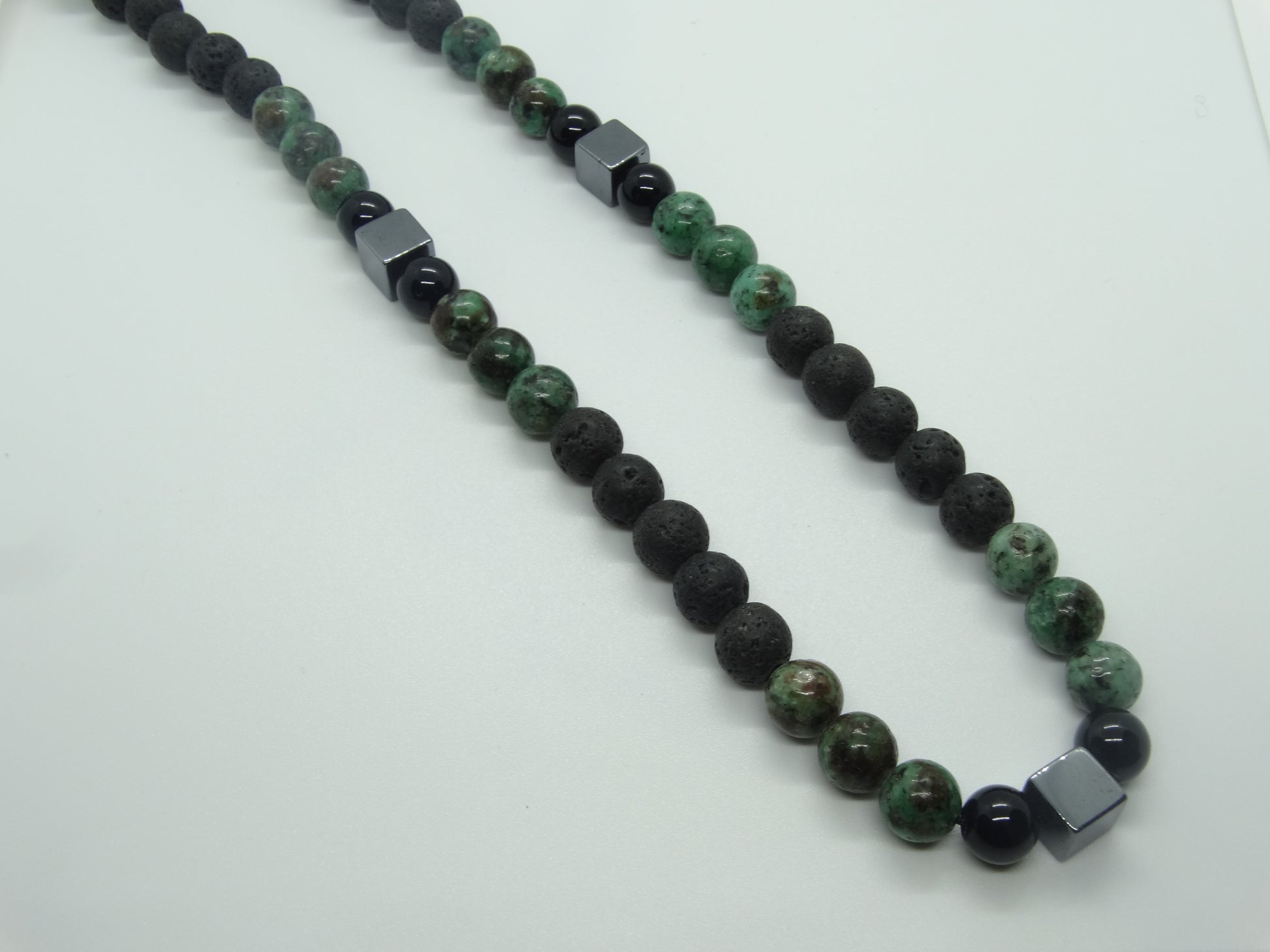 Κολιέ με μαύρες, πράσινες χάντρες και στοιχεία από ατσάλι.