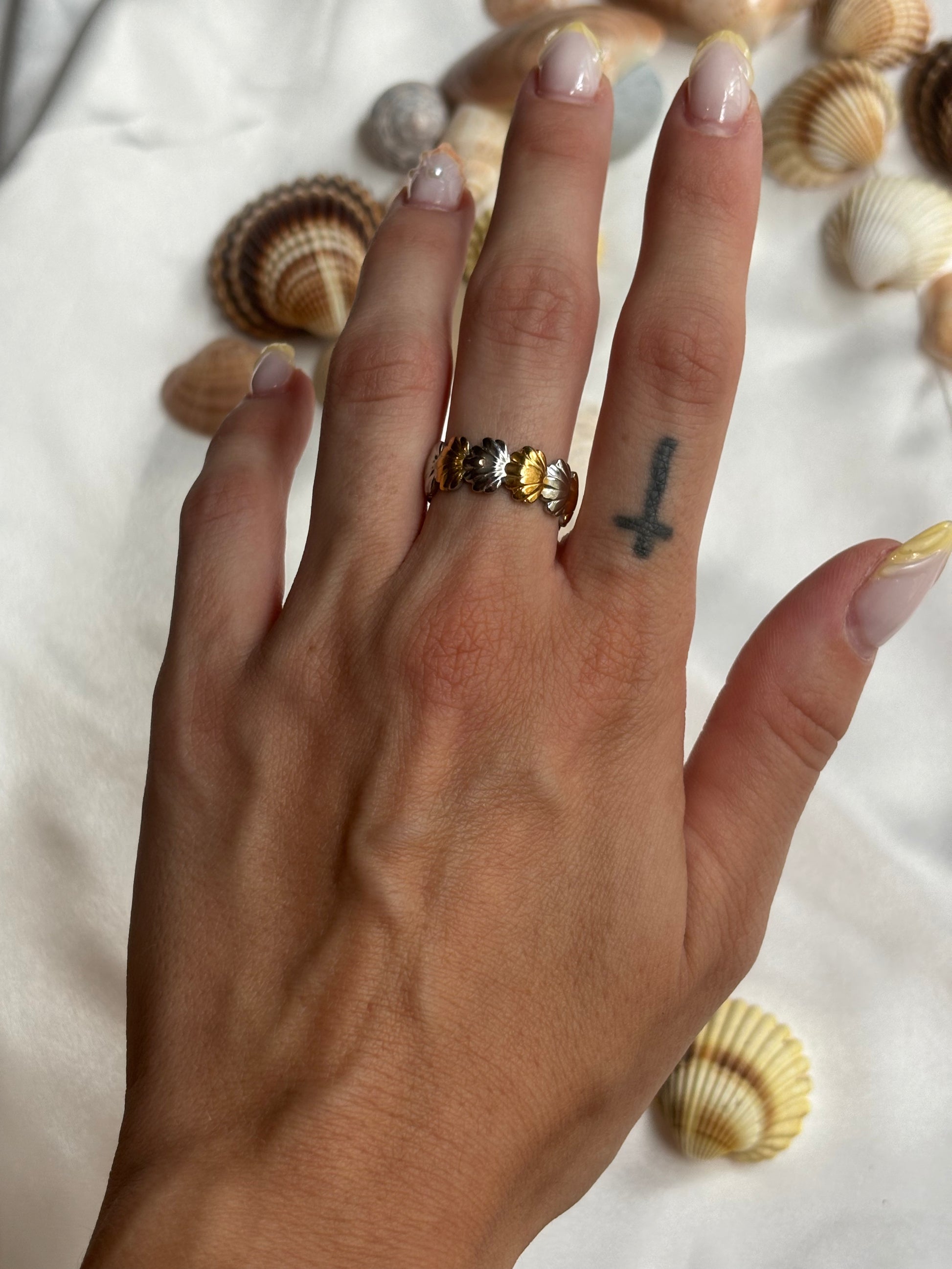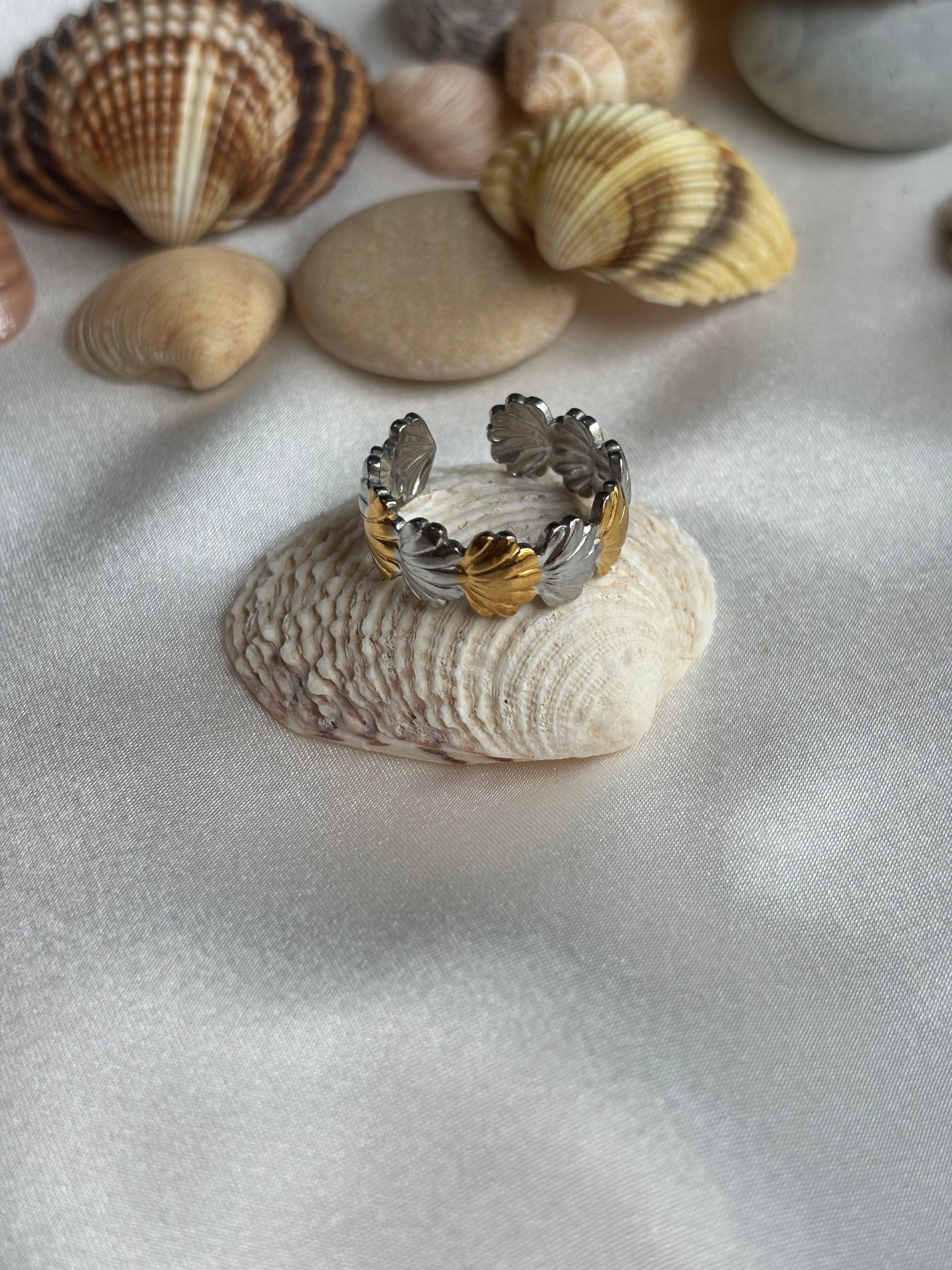 Σούπερ καλοκαιρινά δαχτυλίδια σε δίχρωμη απόχρωση σε σχέδιο με αστερίες και κοχύλια.