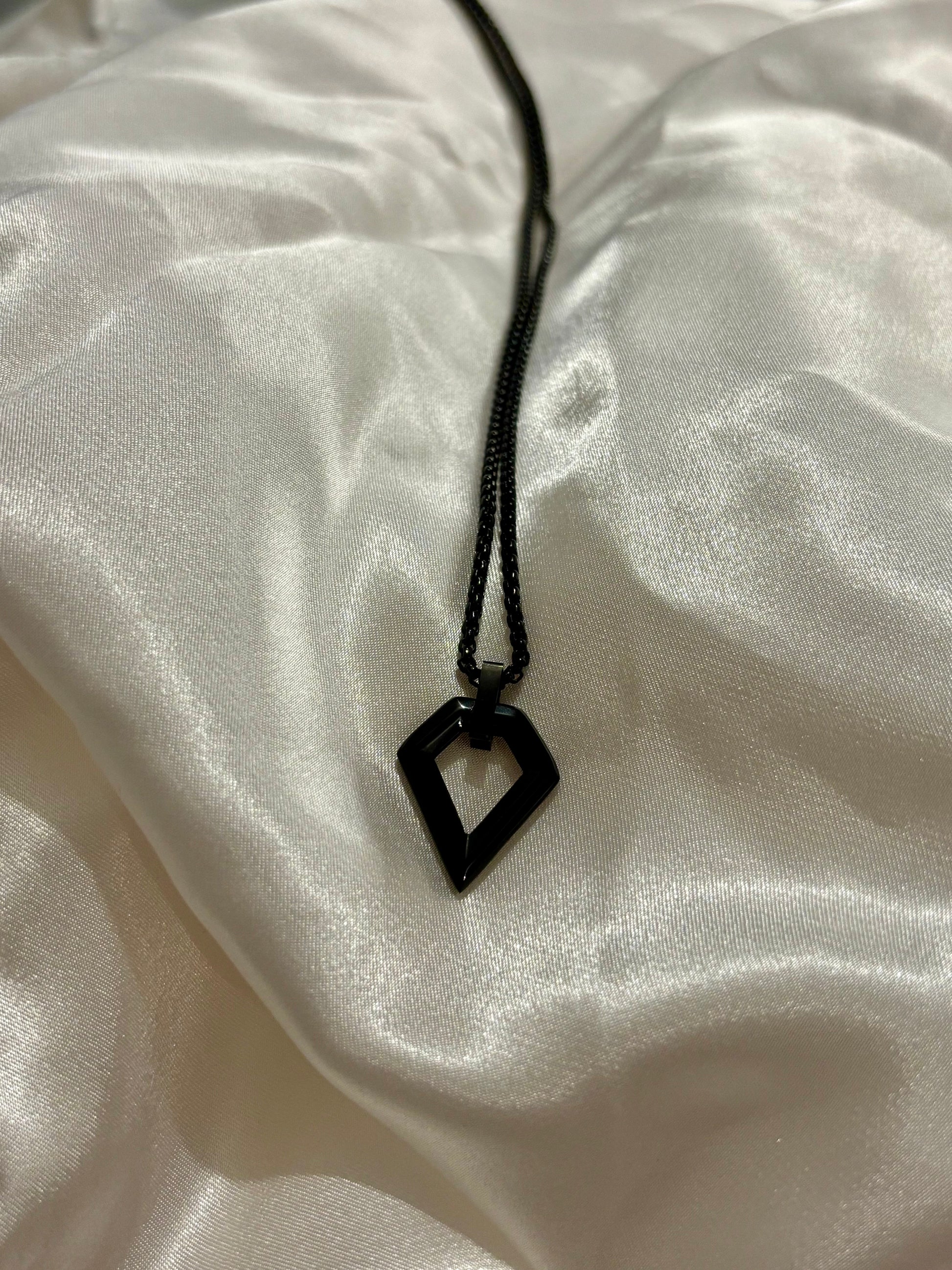 Κολιέ με διακοσμητικό στοιχείο σε σχήμα ρόμβου ,σε μαύρο χρώμα.