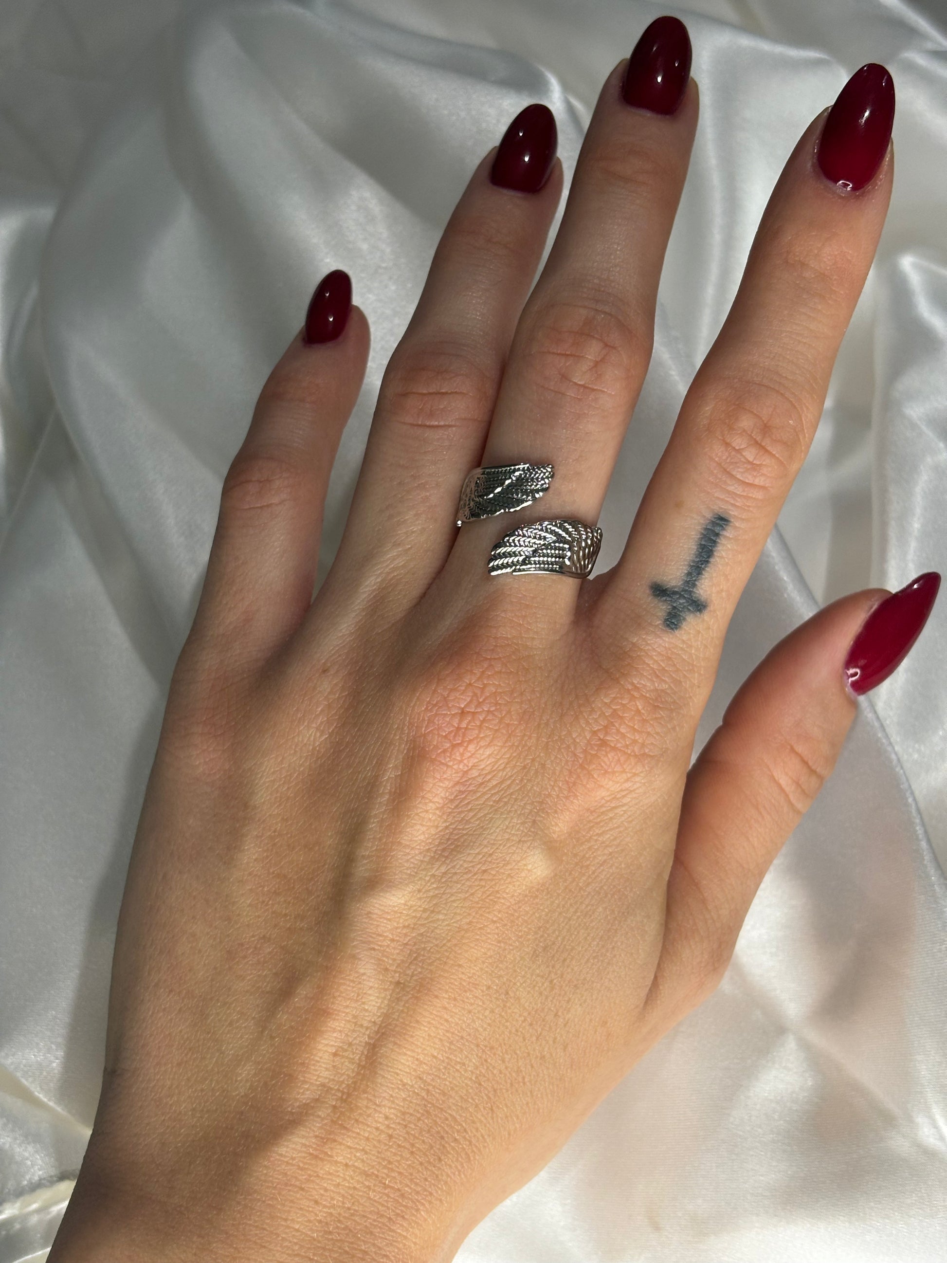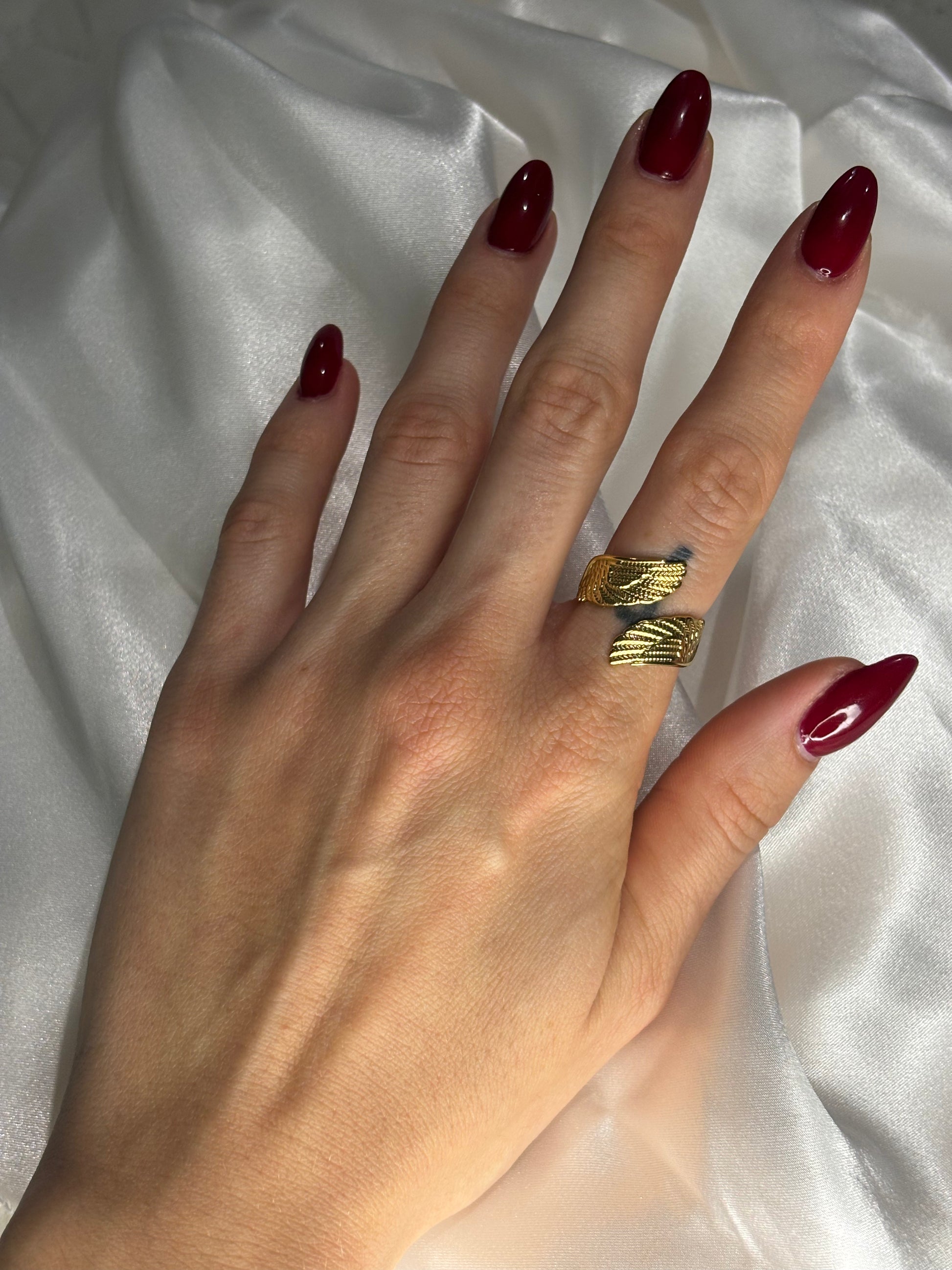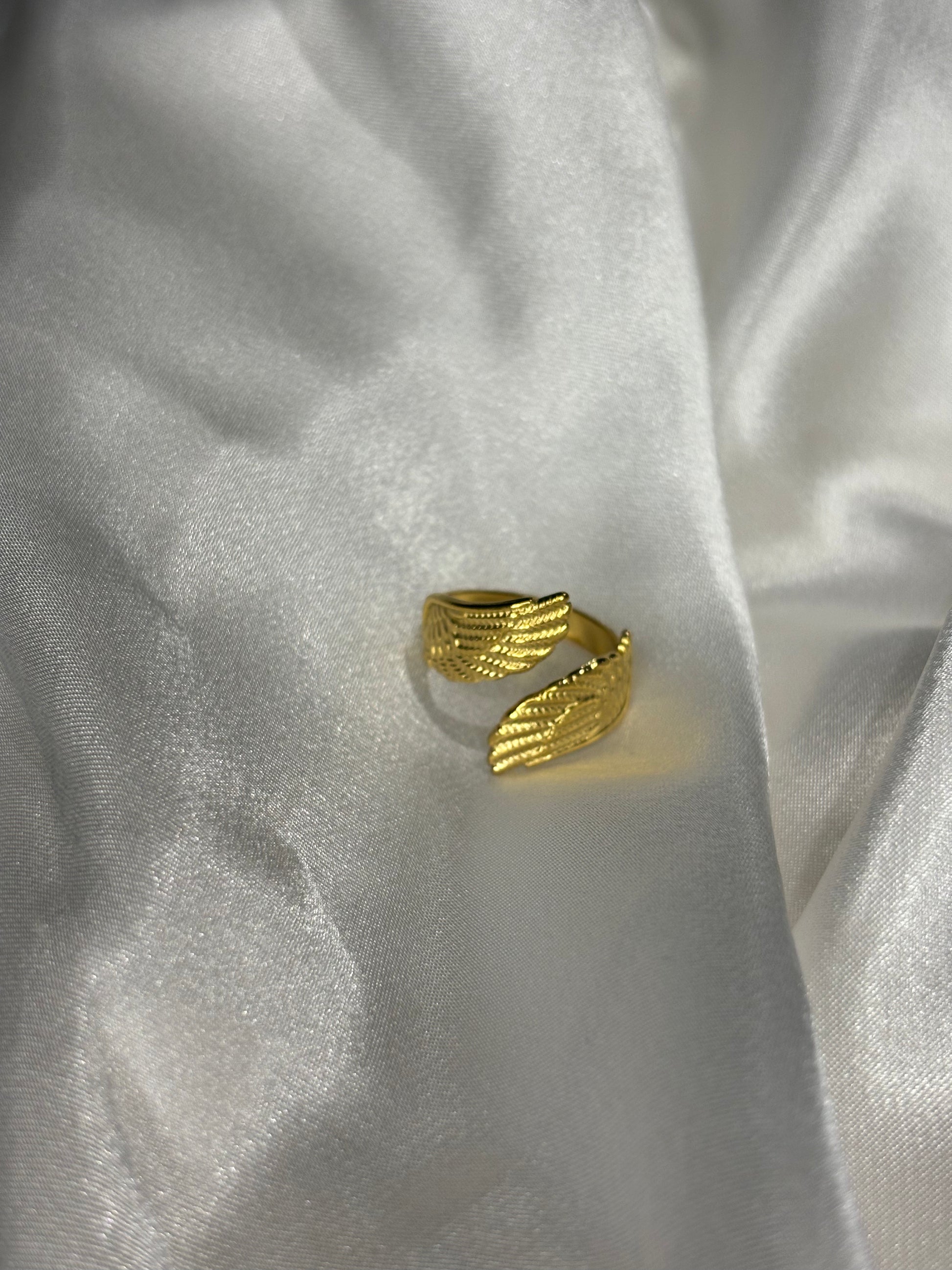 Aria Δαχτυλίδι με Σχέδιο Φτερά – Ρυθμιζόμενο, Σε Ασημί & Χρυσό