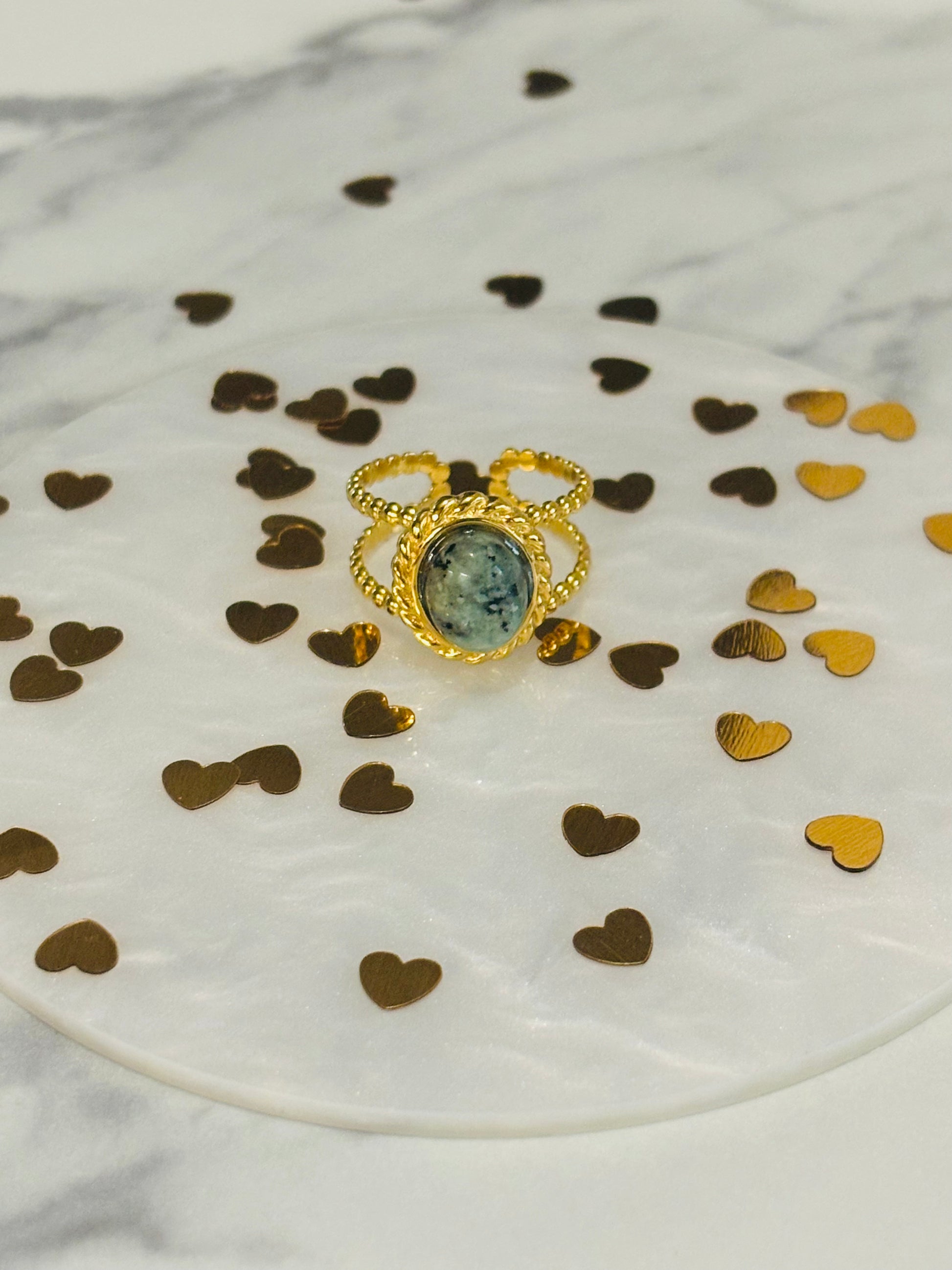 Ατσάλινο δαχτυλίδι με κεντρική γκρι πέτρα.