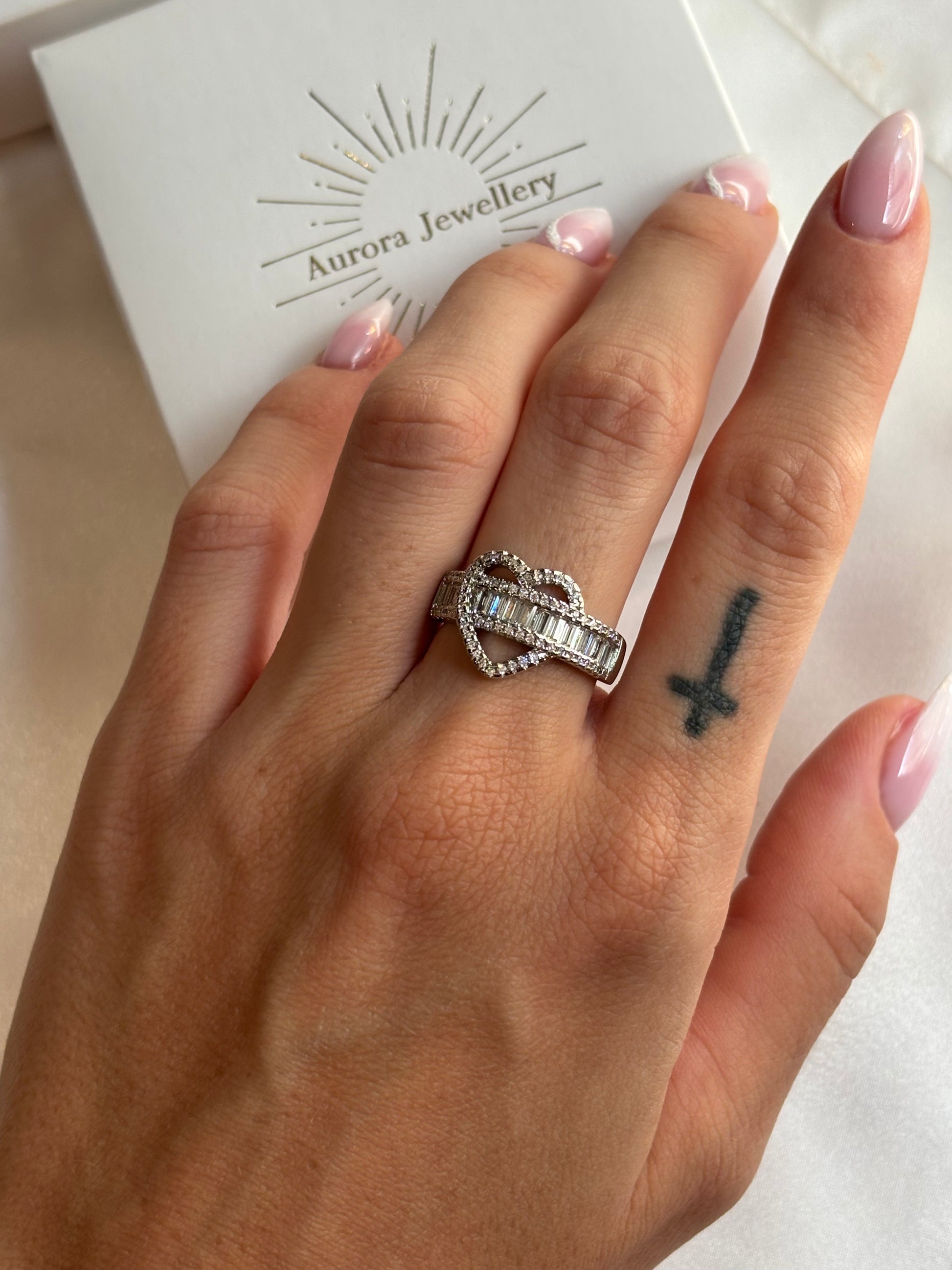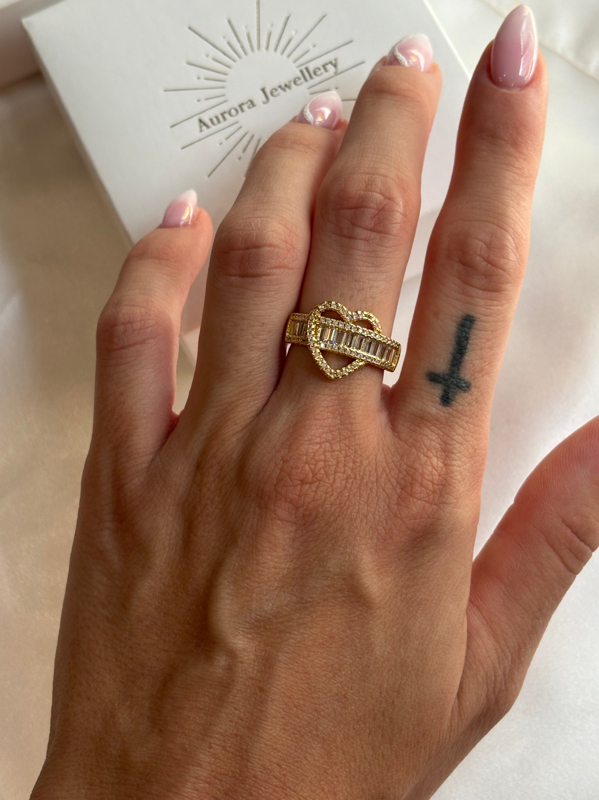 Εντυπωσιακό δαχτυλίδι με ζιργκόν και σχέδιο καρδιά. Διαθέσιμο σε δύο αποχρώσεις.