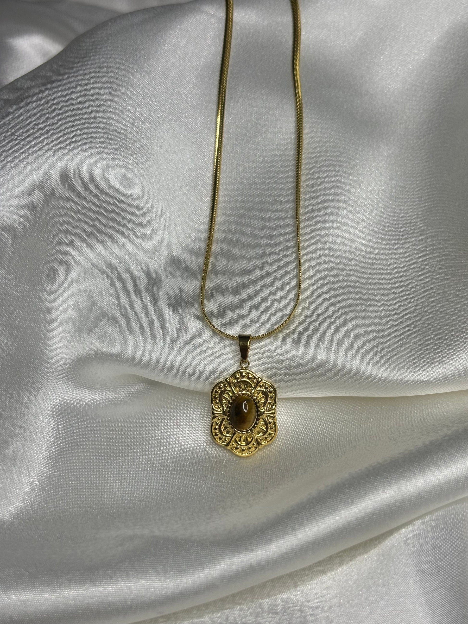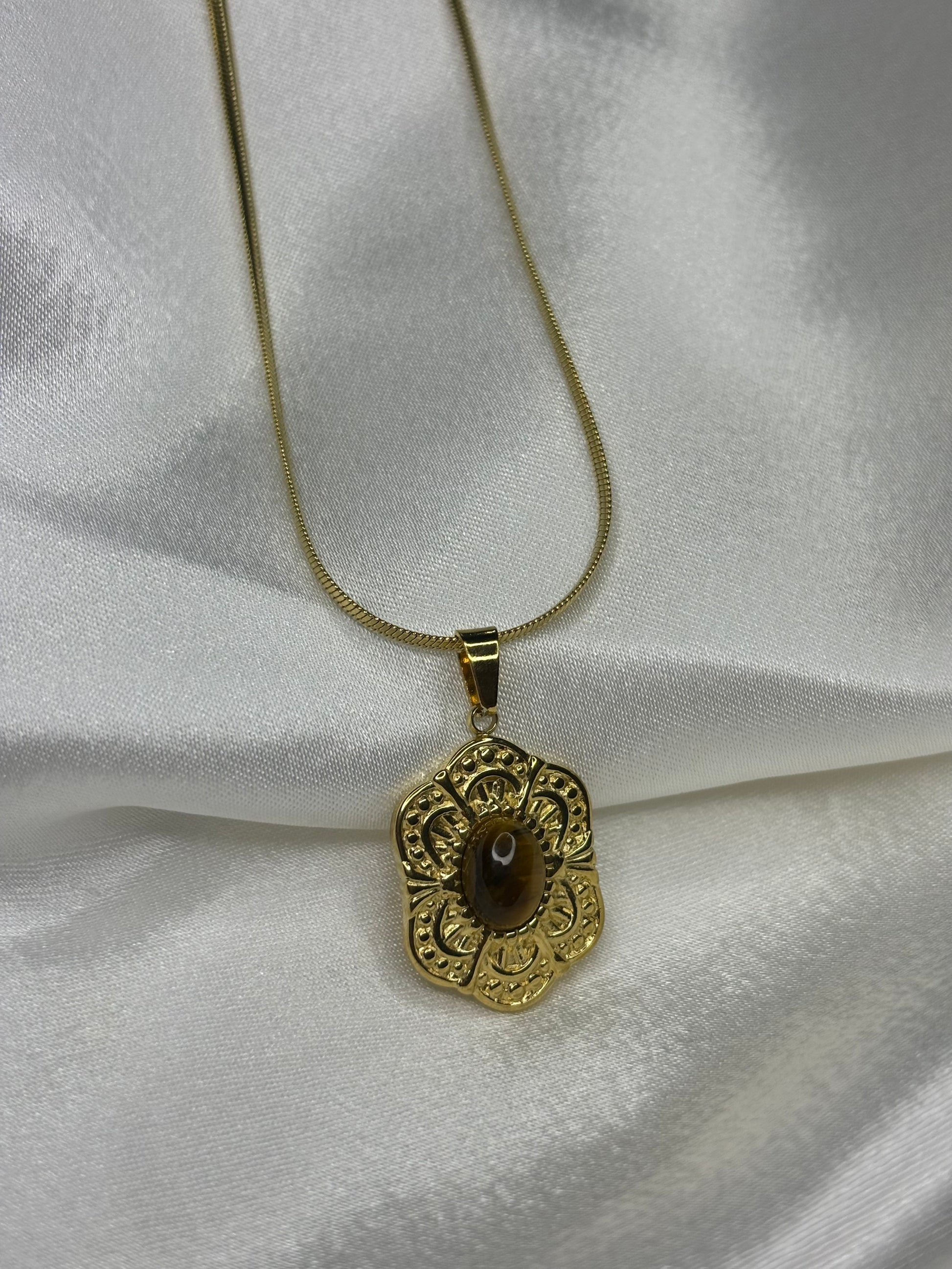 Το Estella Κολιέ είναι ένα minimal & elegant κόσμημα, σχεδιασμένο για όσες λατρεύουν την διακριτική πολυτέλεια & τις φυσικές αποχρώσεις. Το καφέ πετράδι στο κέντρο χαρίζει μια ζεστή, γήινη αίσθηση, καθιστώντας το ιδανικό για κάθε περίσταση.