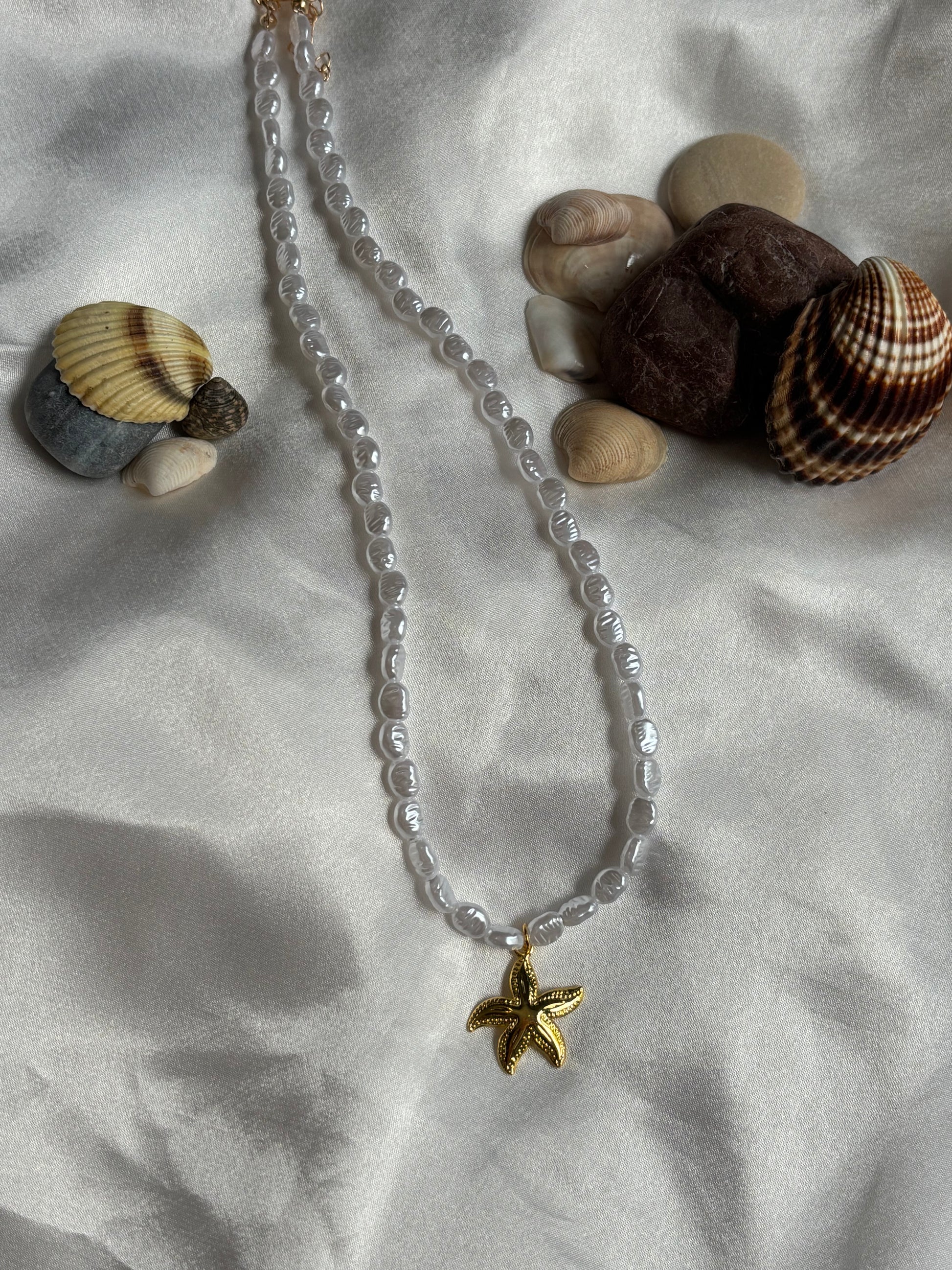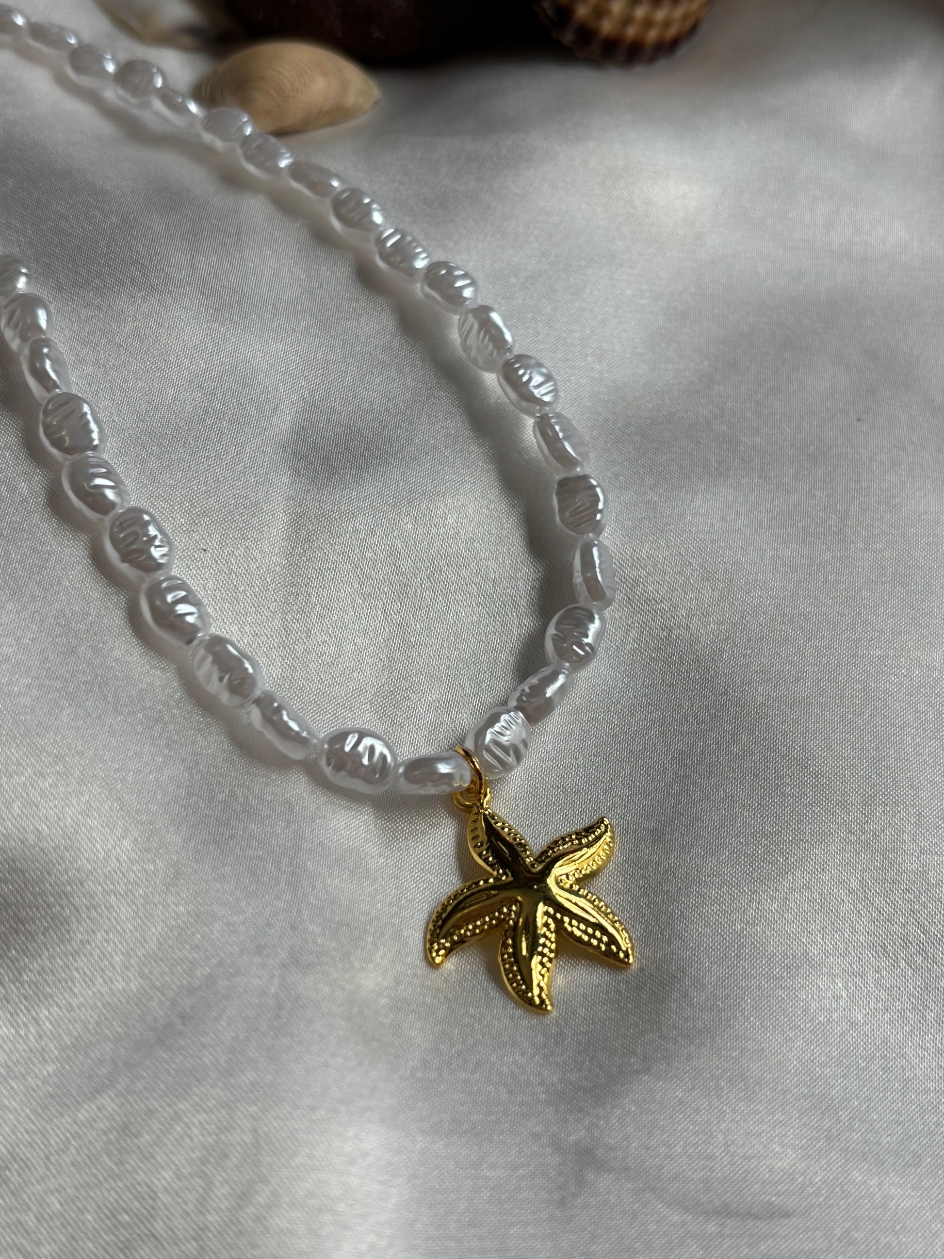 Το απόλυτο καλοκαιρινό κολιέ με πέρλες και έναν χρυσό αστερία από ανοξείδωτο ατσάλι.