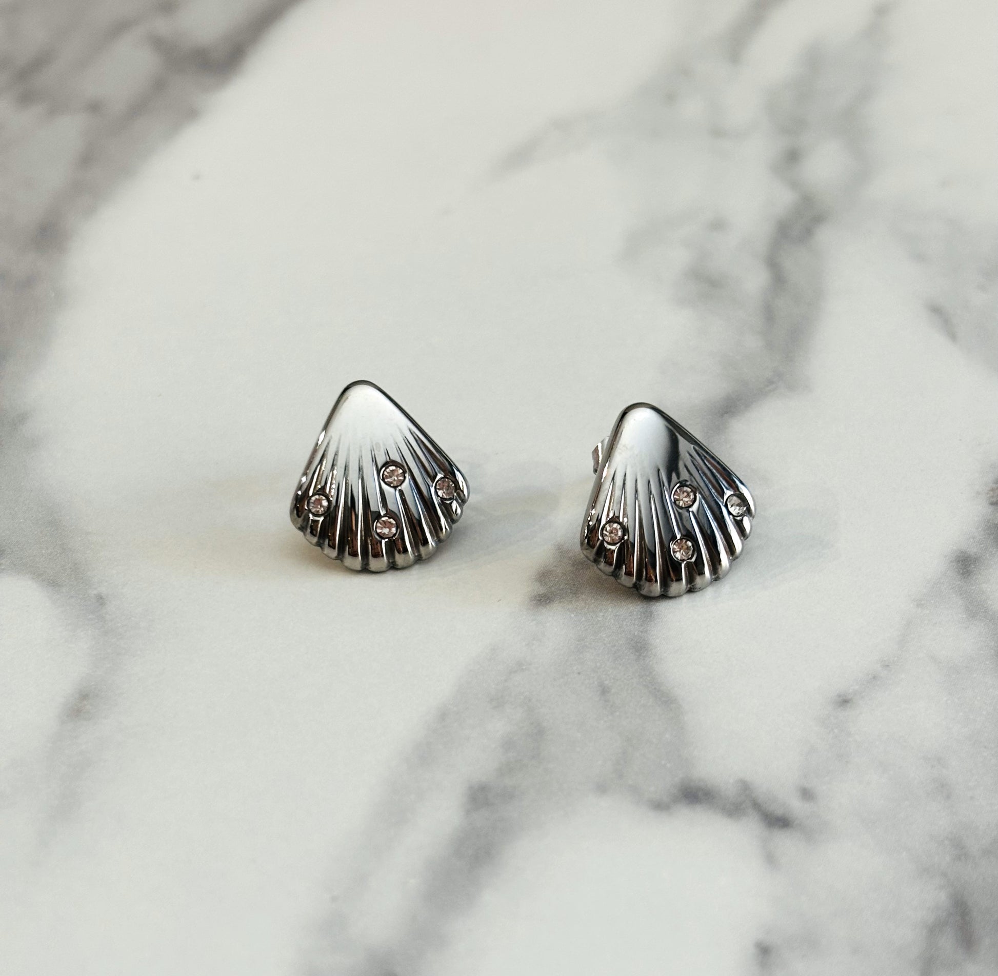 Galateia Ασημί Σκουλαρίκια Κοχύλι με Ζιργκόν – Κομψά & Καλοκαιρινά