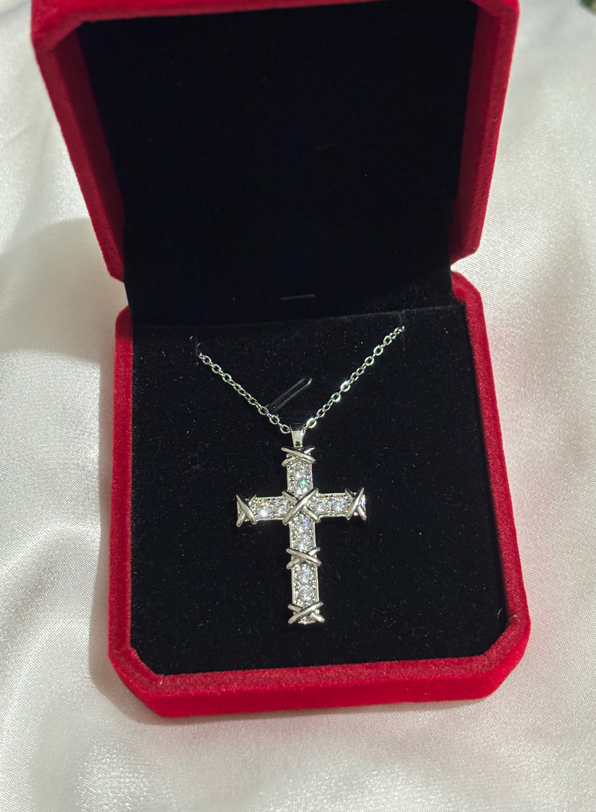 Υπέροχος ασημί σταυρός με ζιργκόν.