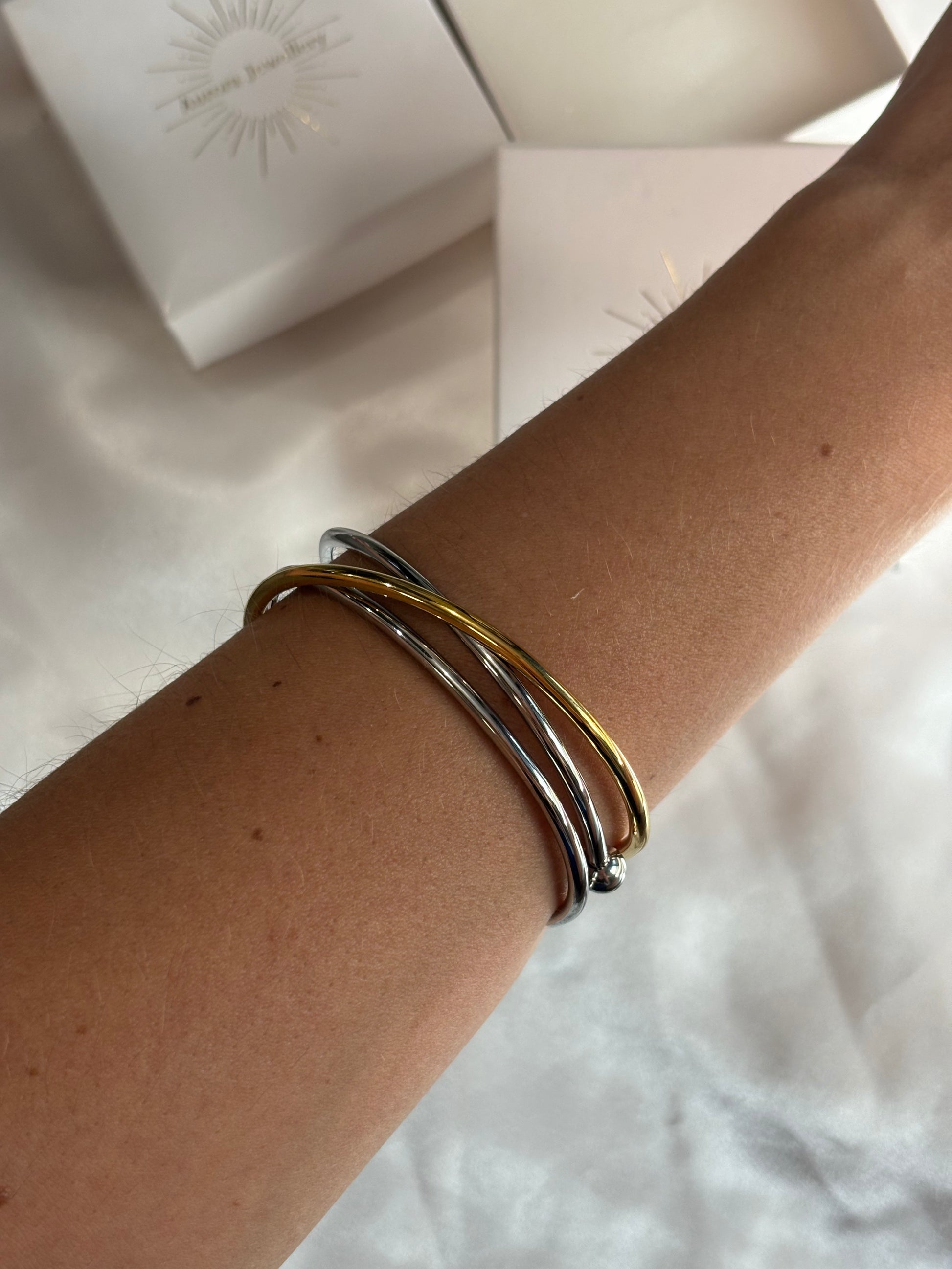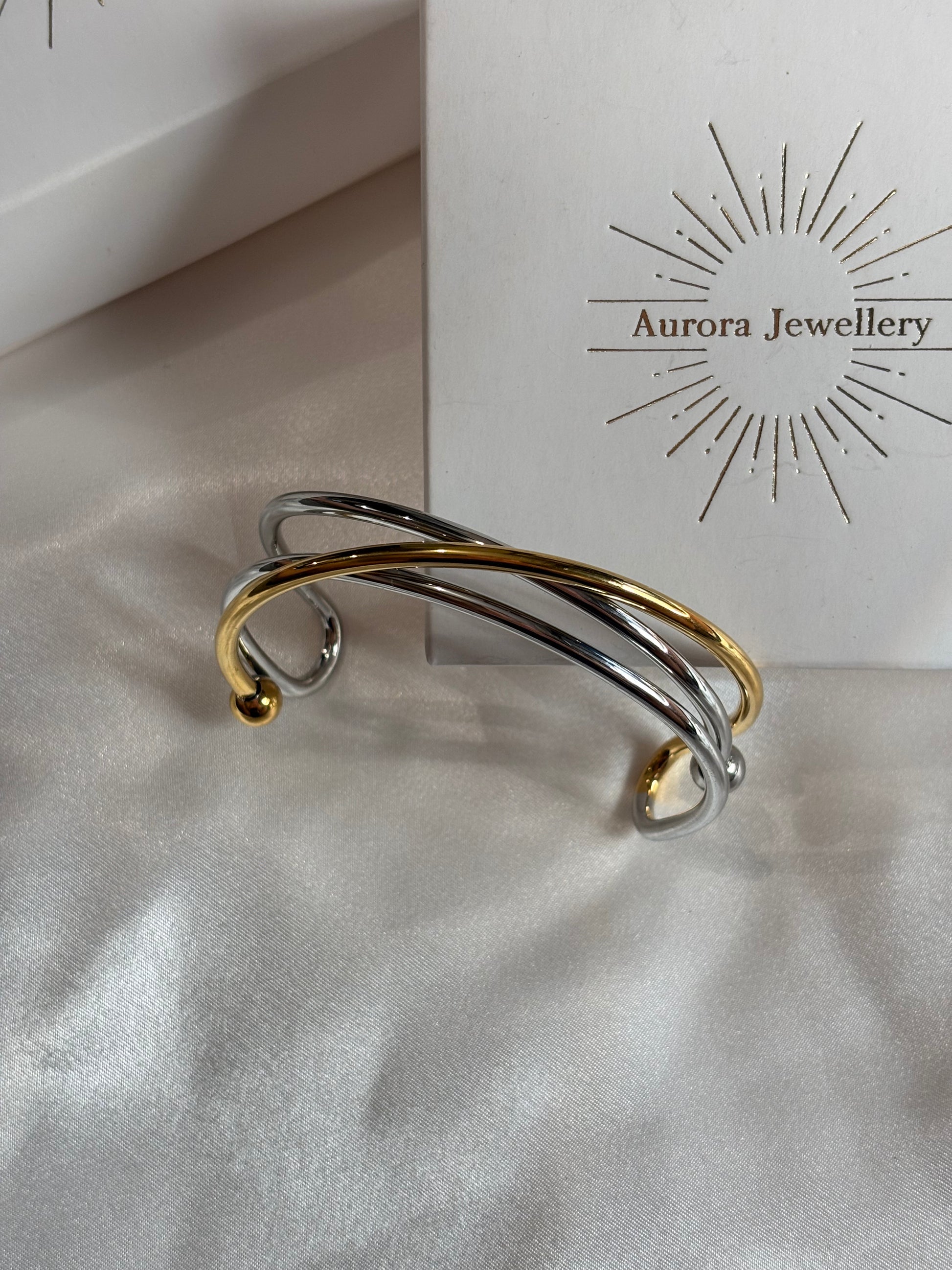 Δίχρωμη χειροπέδα σε λιτή γραμμή για κάθε μέρα.