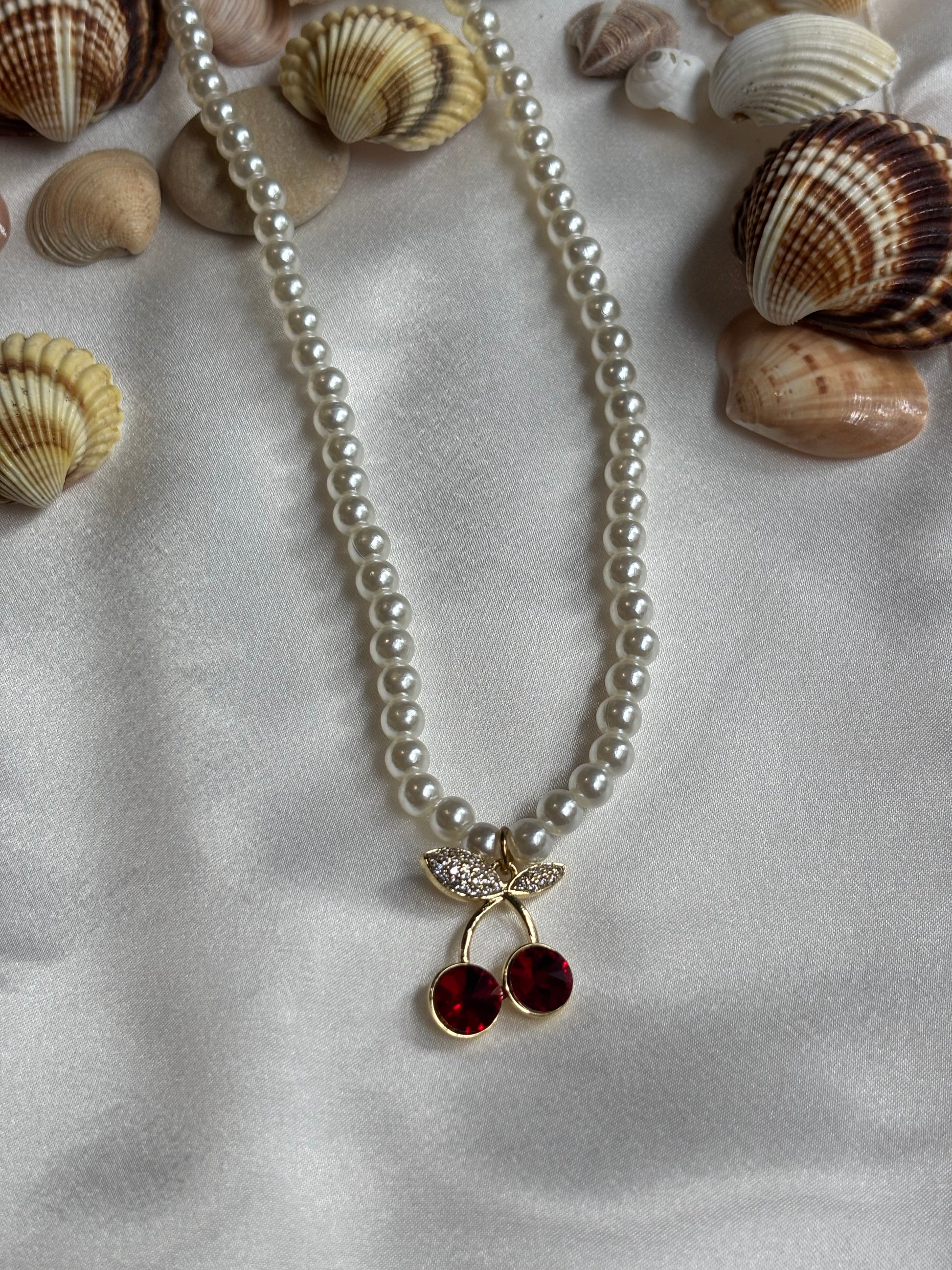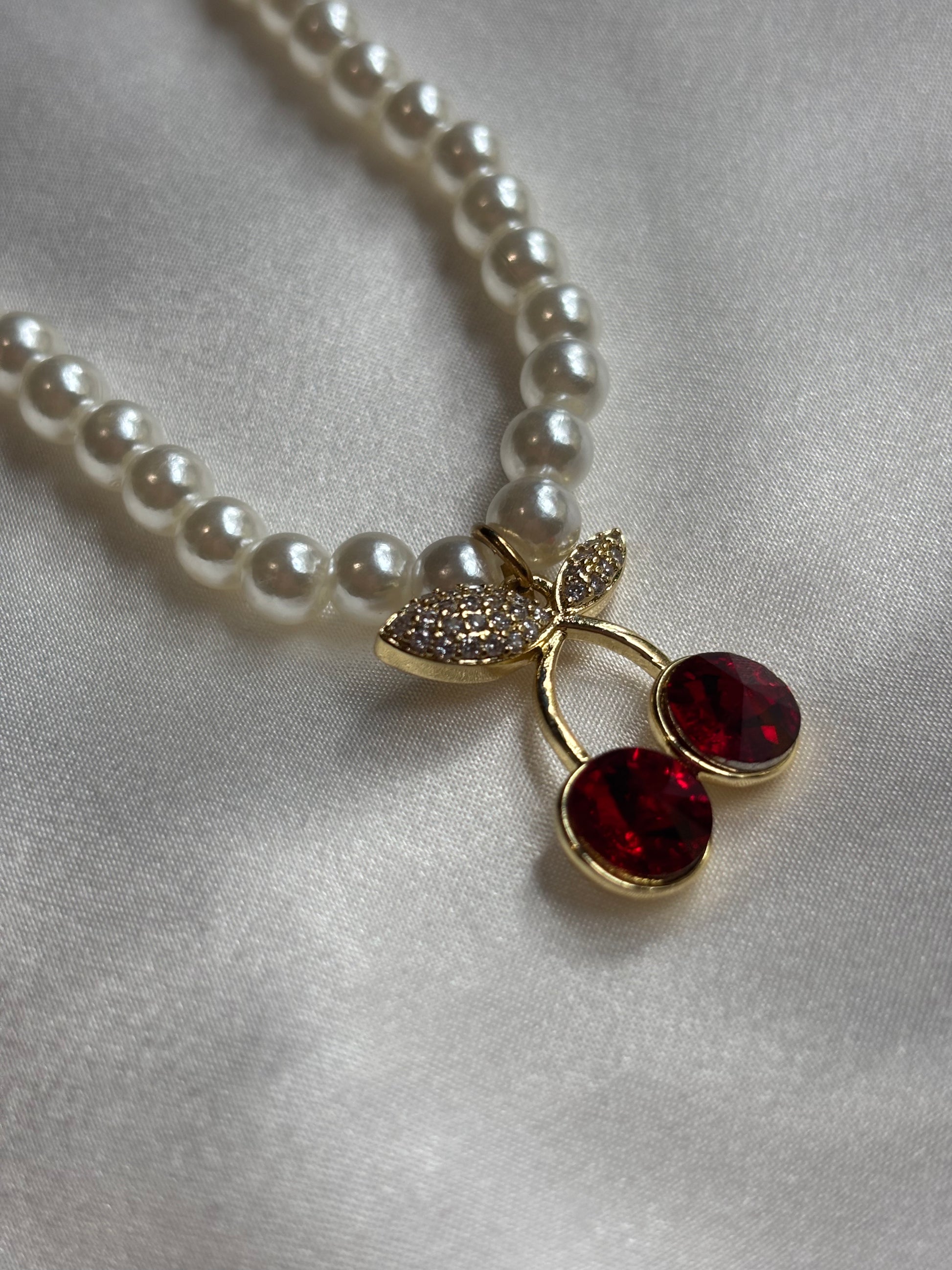 Κολιέ με πέρλες και διακοσμητικό στοιχείο κερασάκια. Κομψό και μέσα στις τάσεις.