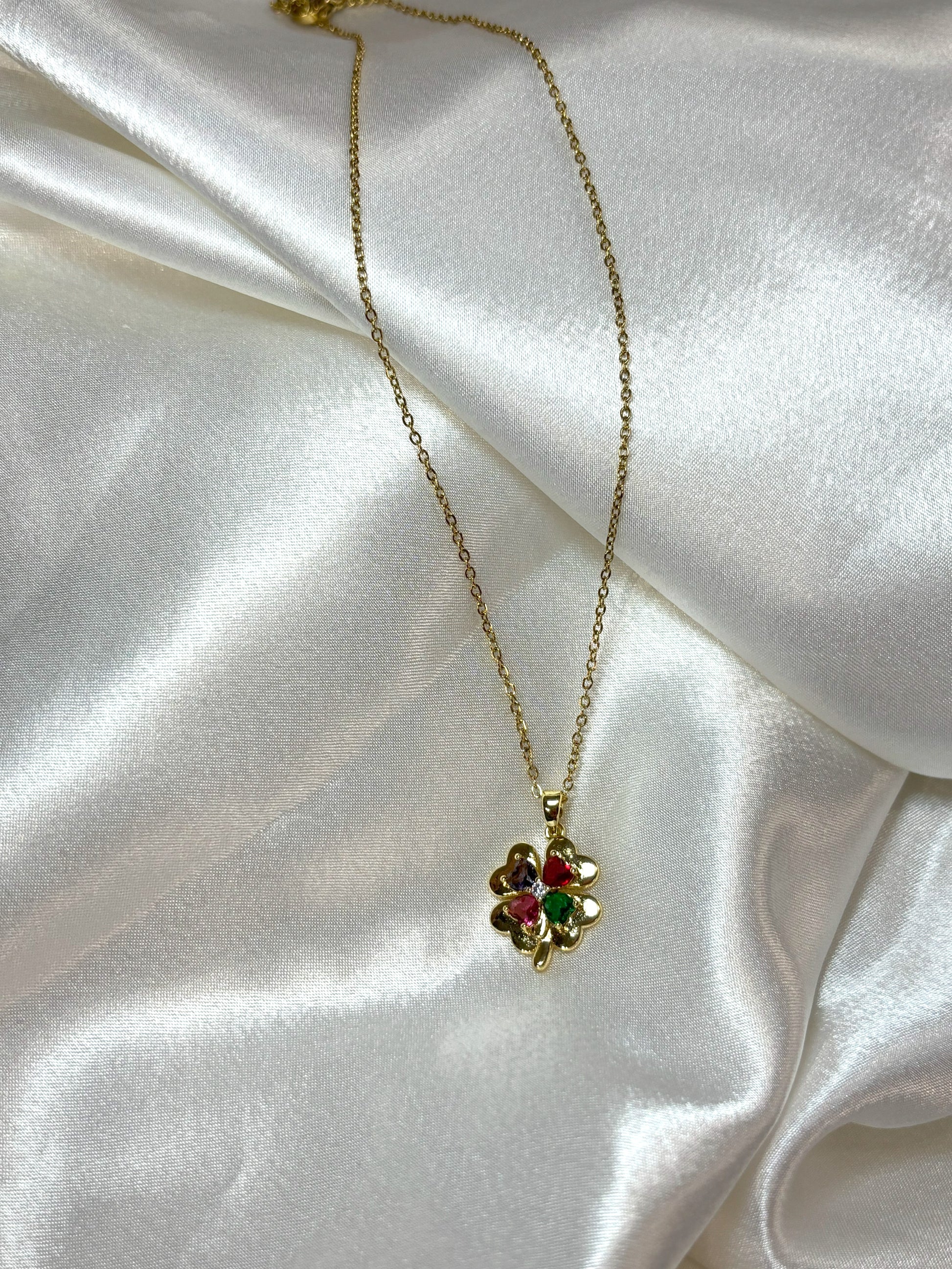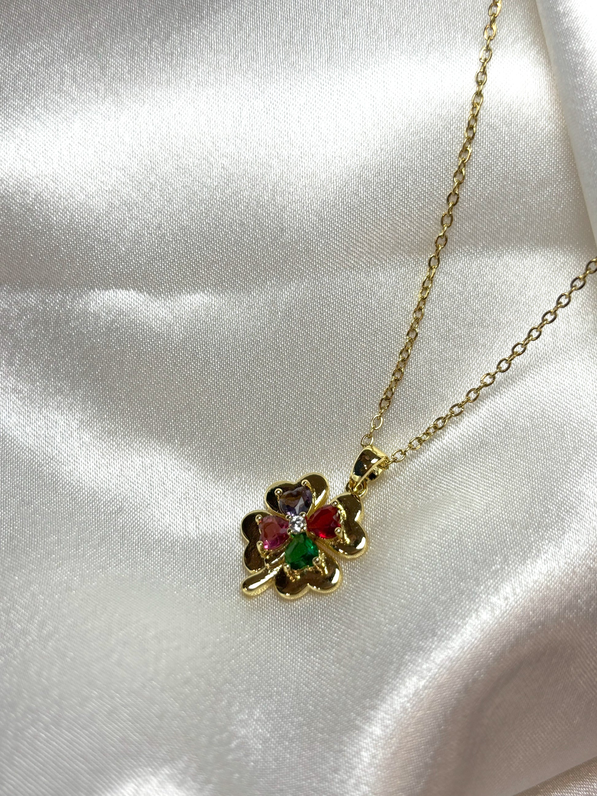 Ivonne Κολιέ με Τετράφυλλο Τριφύλλι & Πολύχρωμα Ζιργκόν