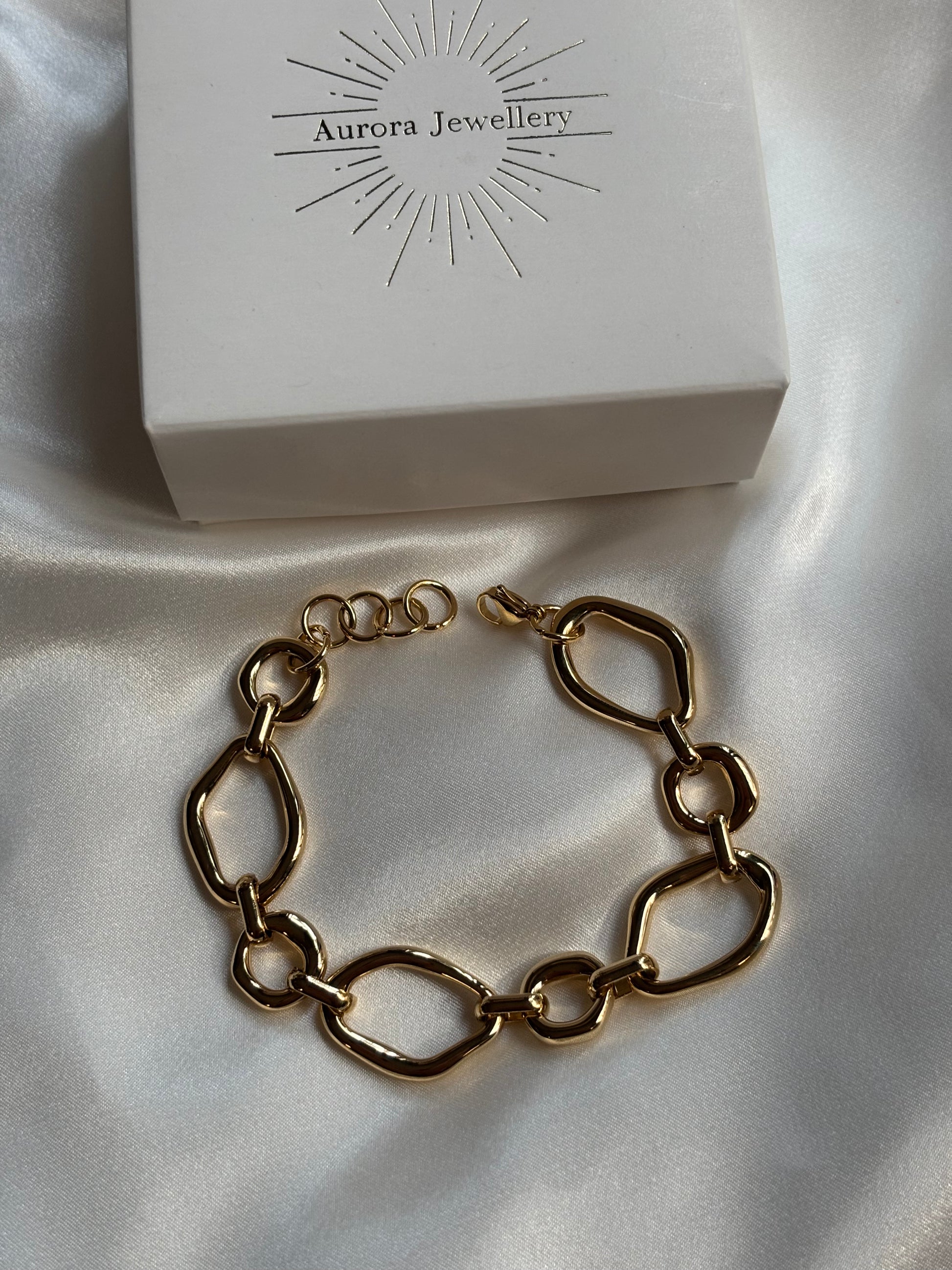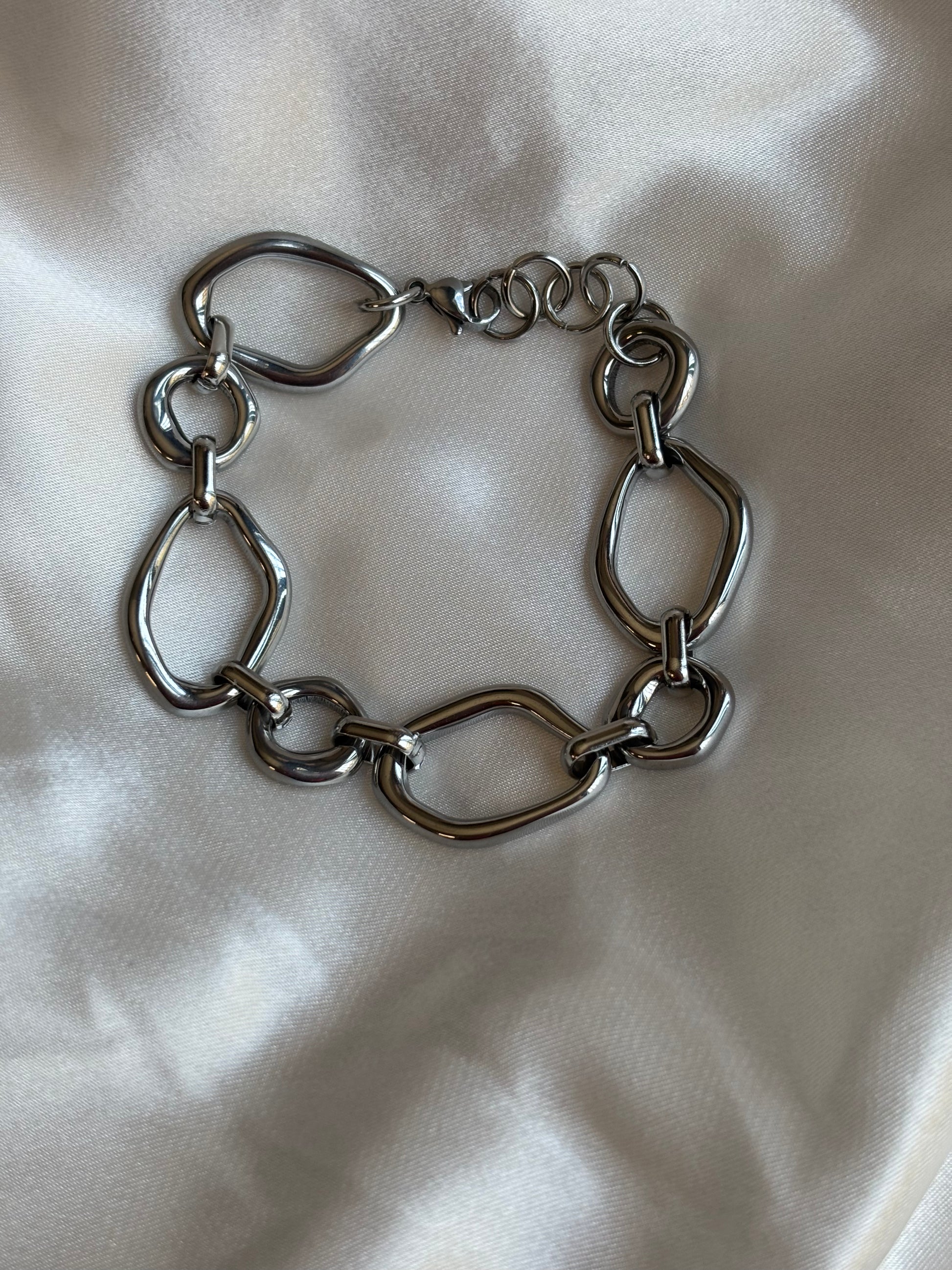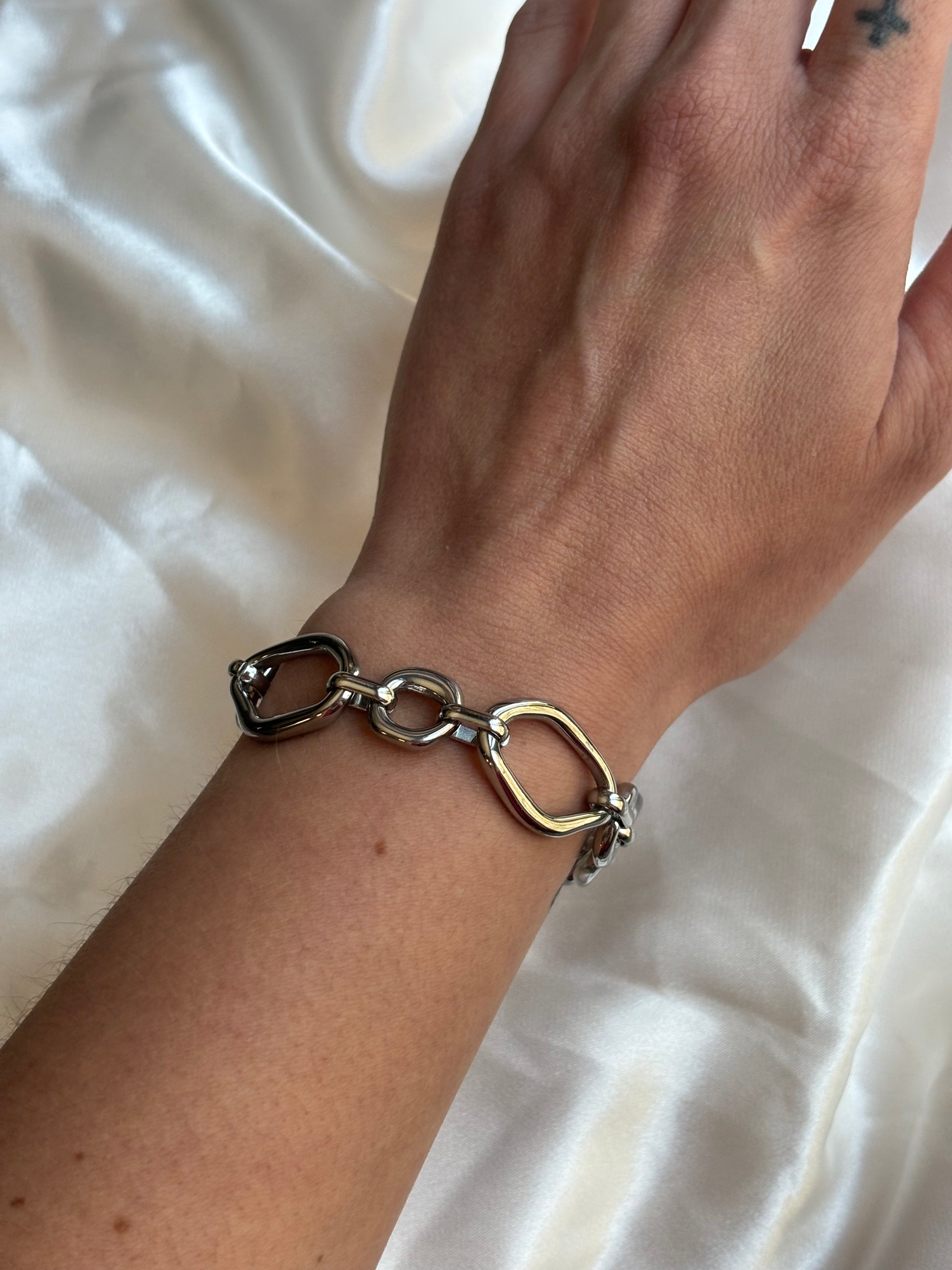 Βραχιόλι με μεγάλους και μικρούς κρίκους σε ασημί απόχρωση.