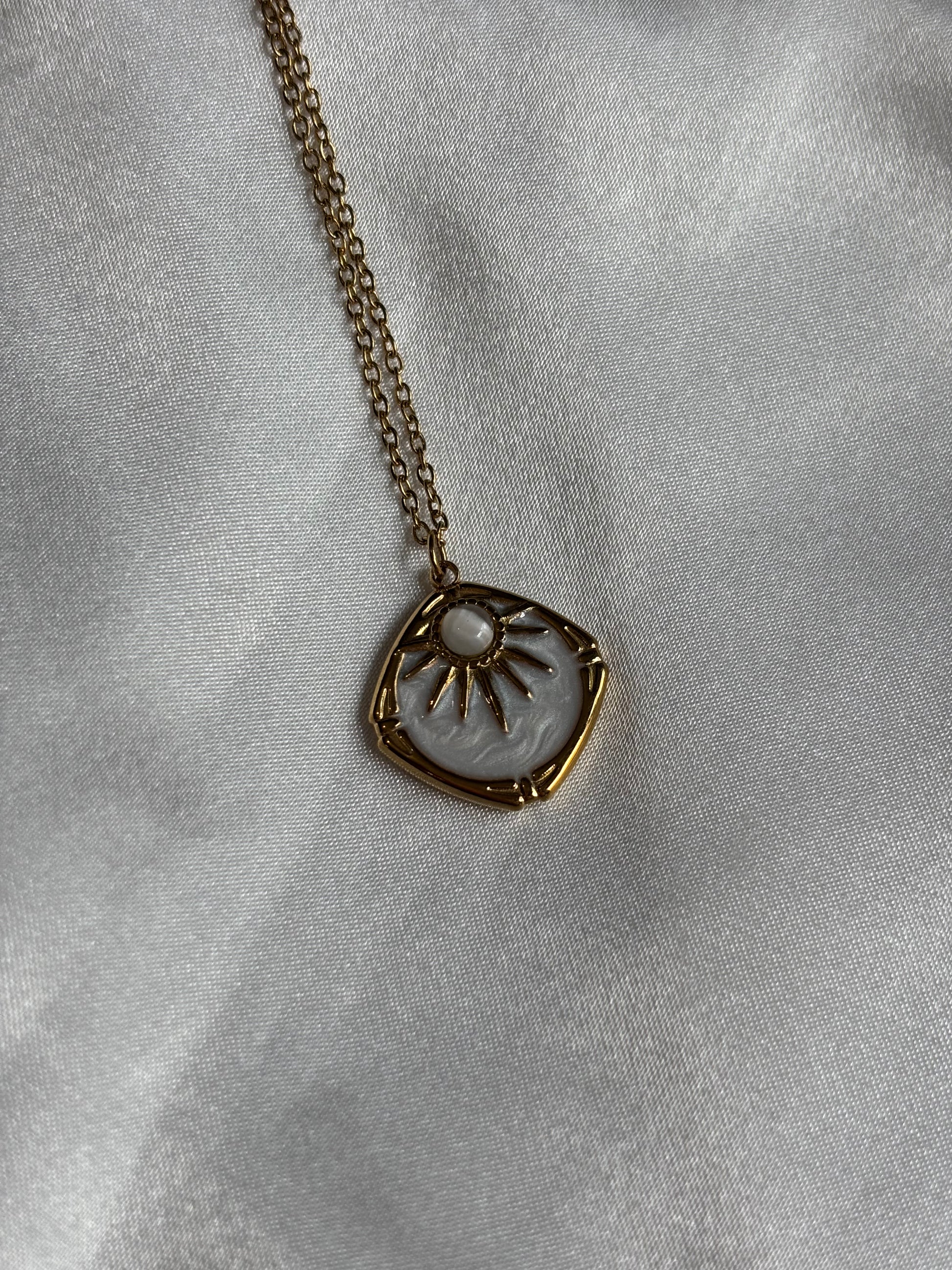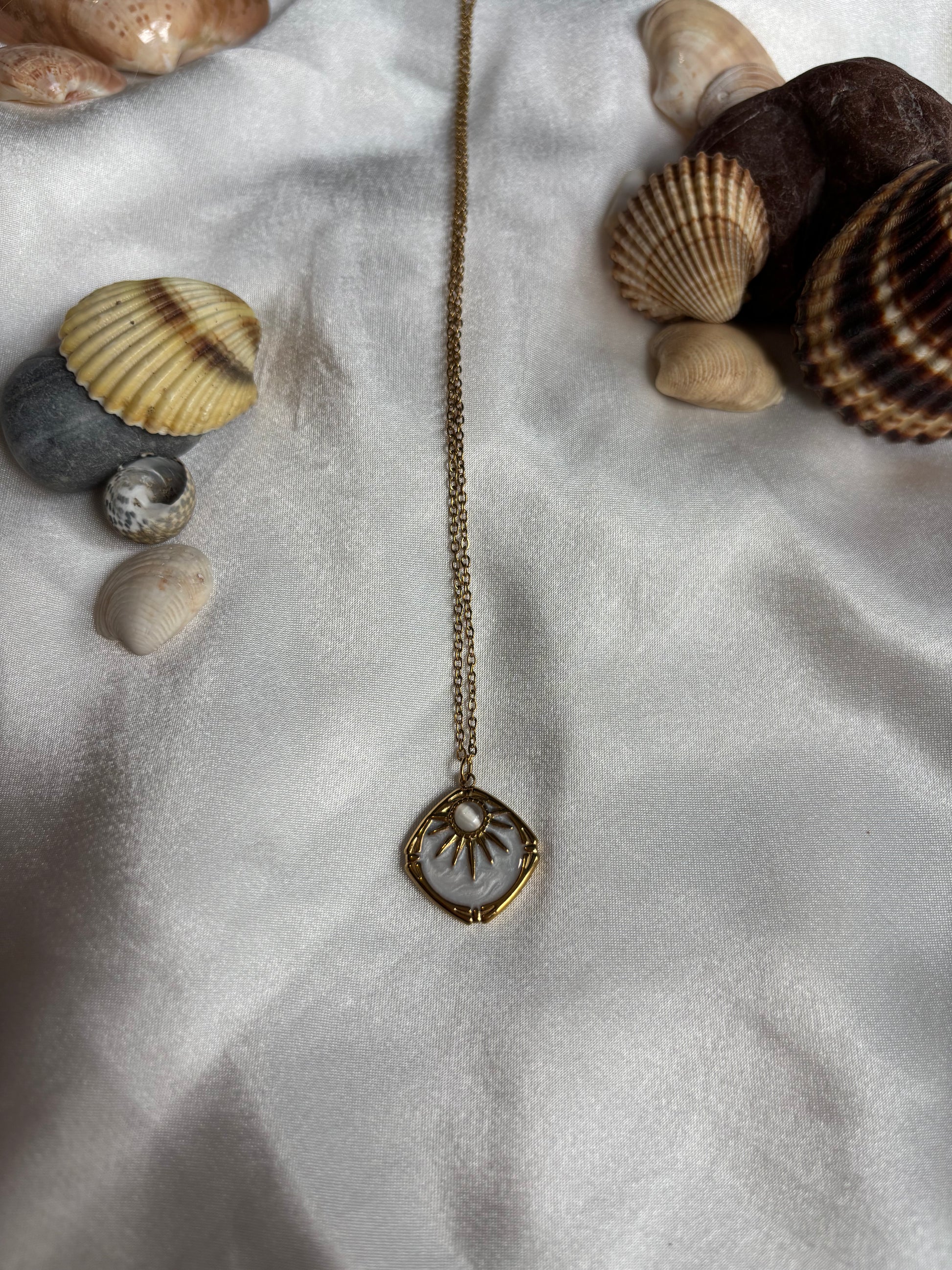Χρυσή αλυσίδα με διακοσμητικό με πετρούλα και σμάλτο.