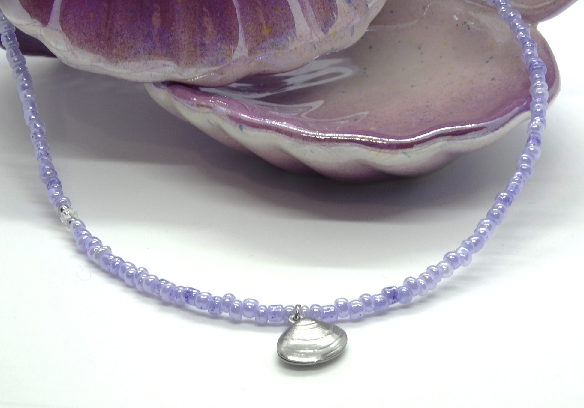 Yλικό: γυάλινες χαντρούλες, διακοσμητικό στοιχείο( κοχύλι) από ατσάλι και ατσάλινο κούμπωμα.