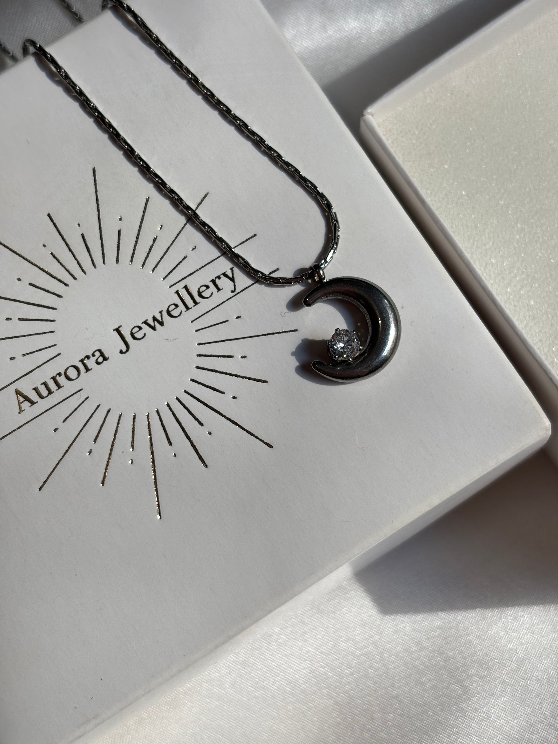 Αλυσίδα με διακοσμητικό στοιχείο φεγγάρι και ζιργκόν στο κέντρο.