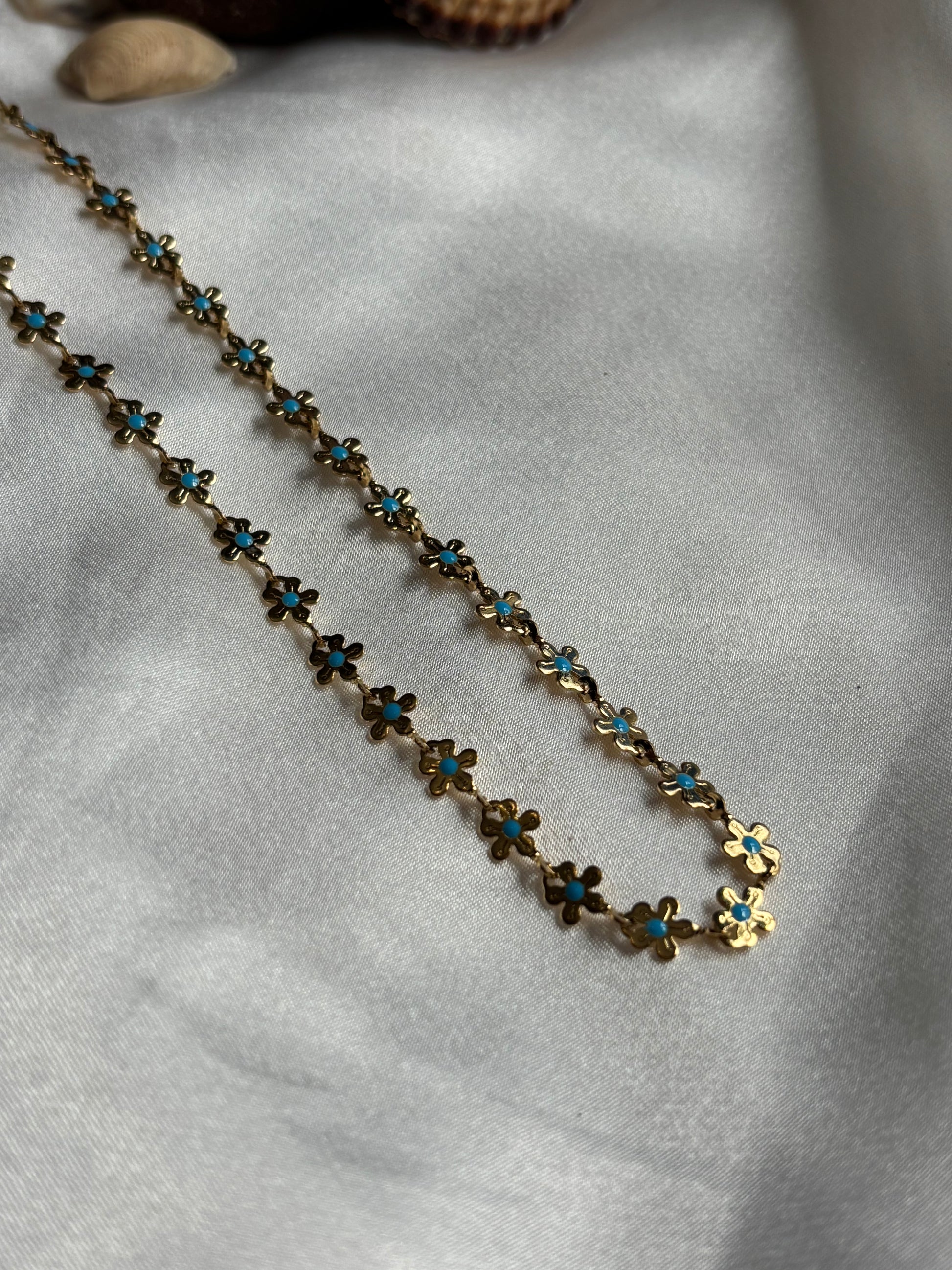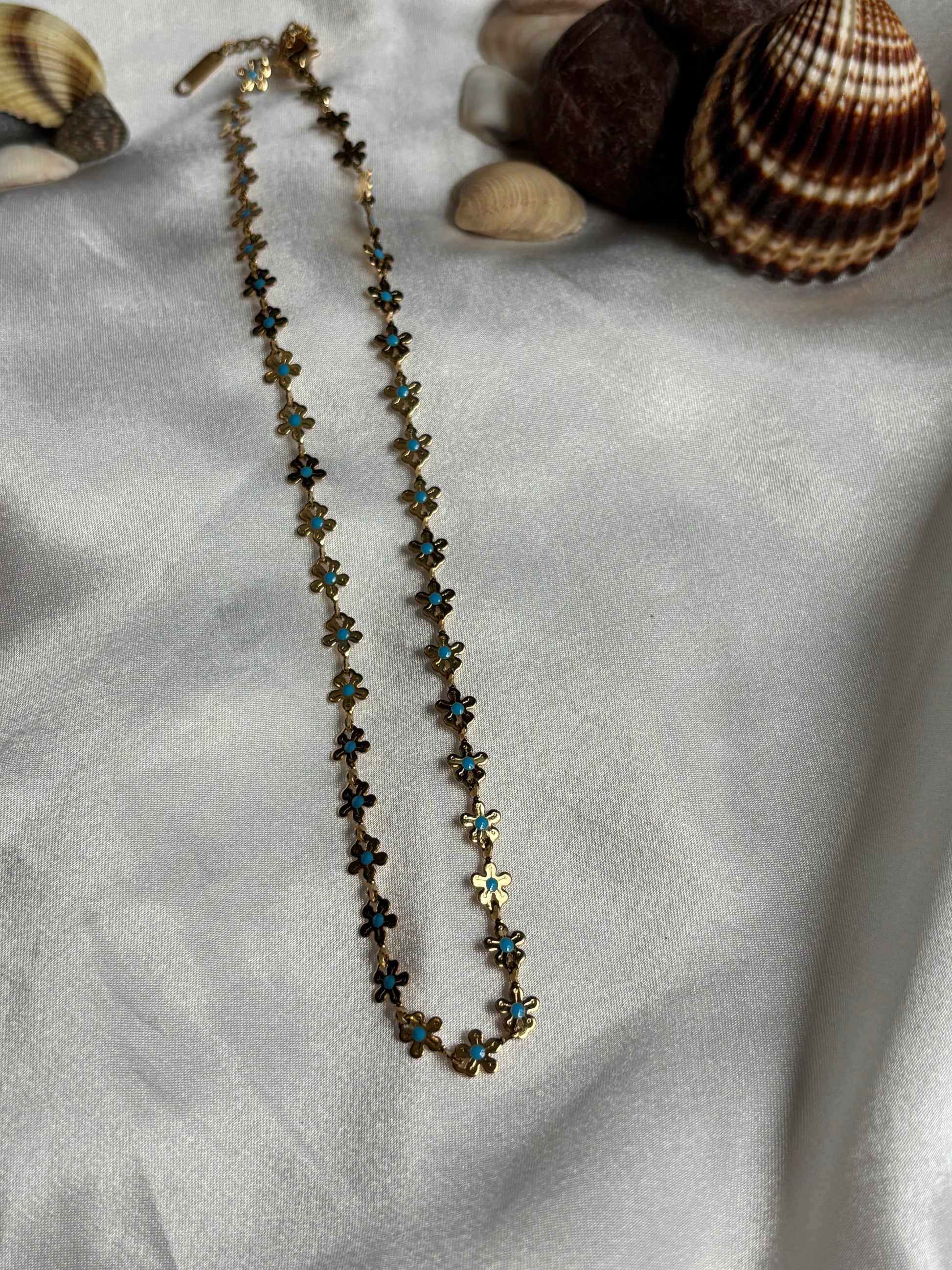 Χρυσό κολιέ με μικρά ανθάκια περιμετρικά.