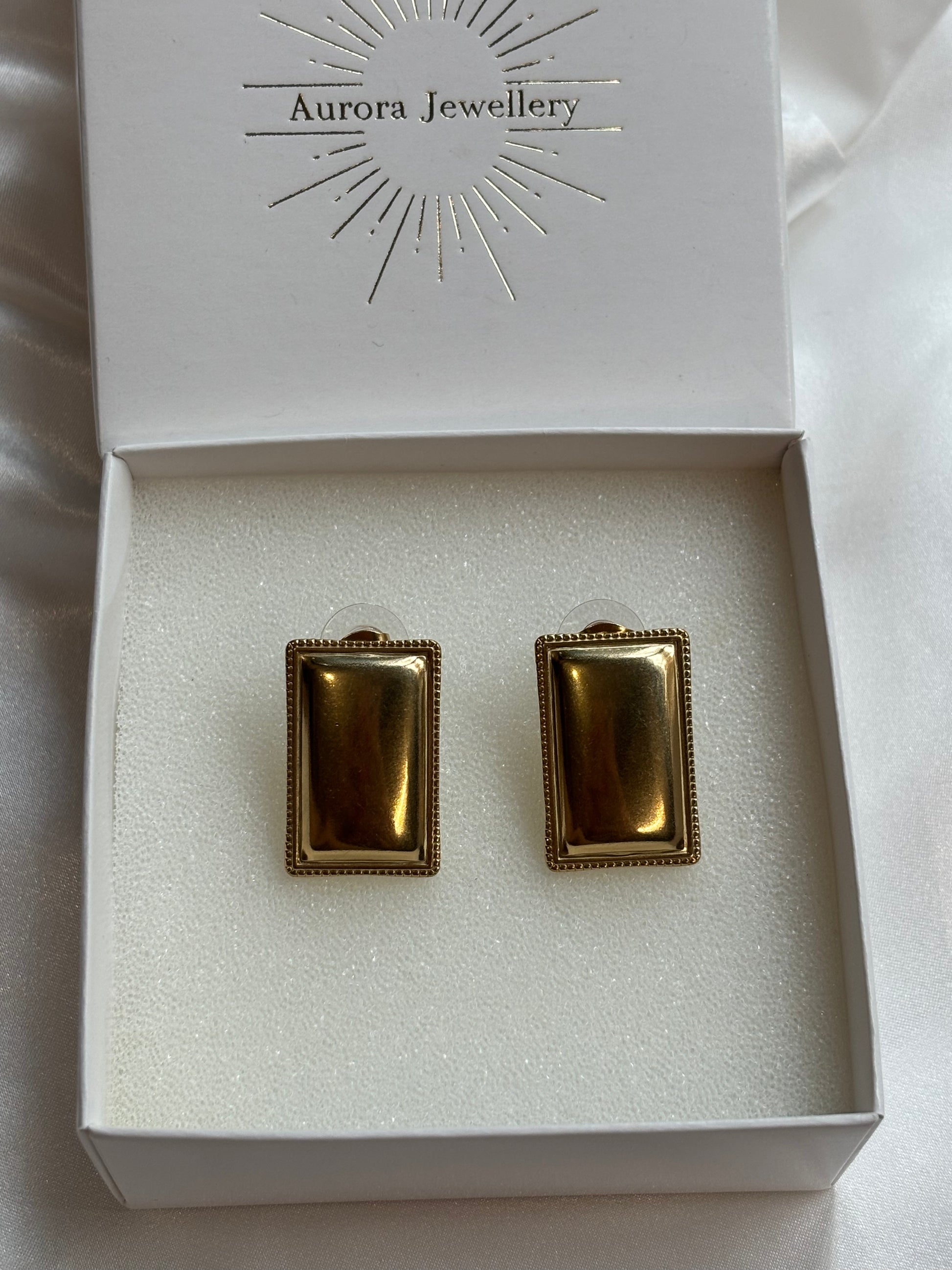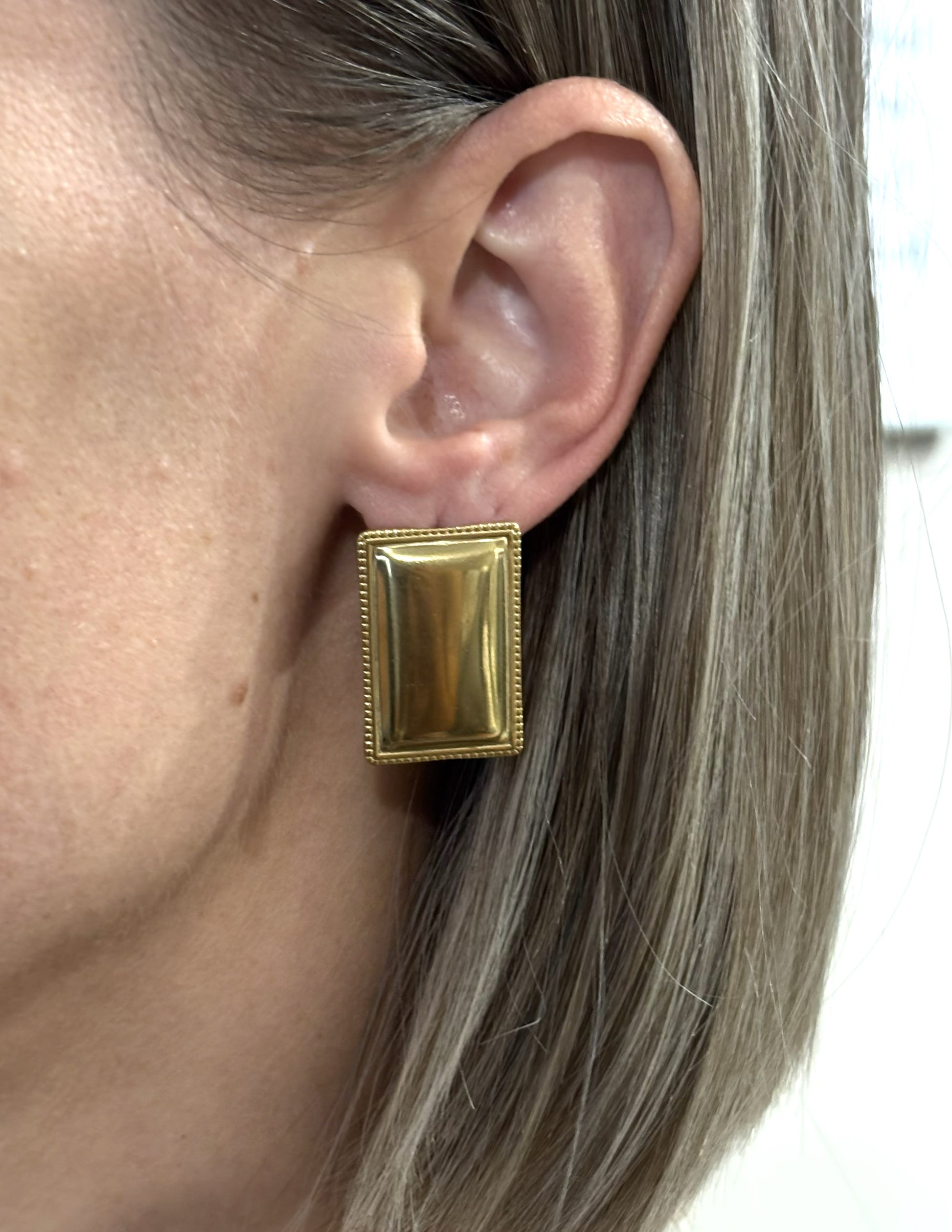 Χρυσά σκουλαρίκια σε ορθογώνιο σχήμα.