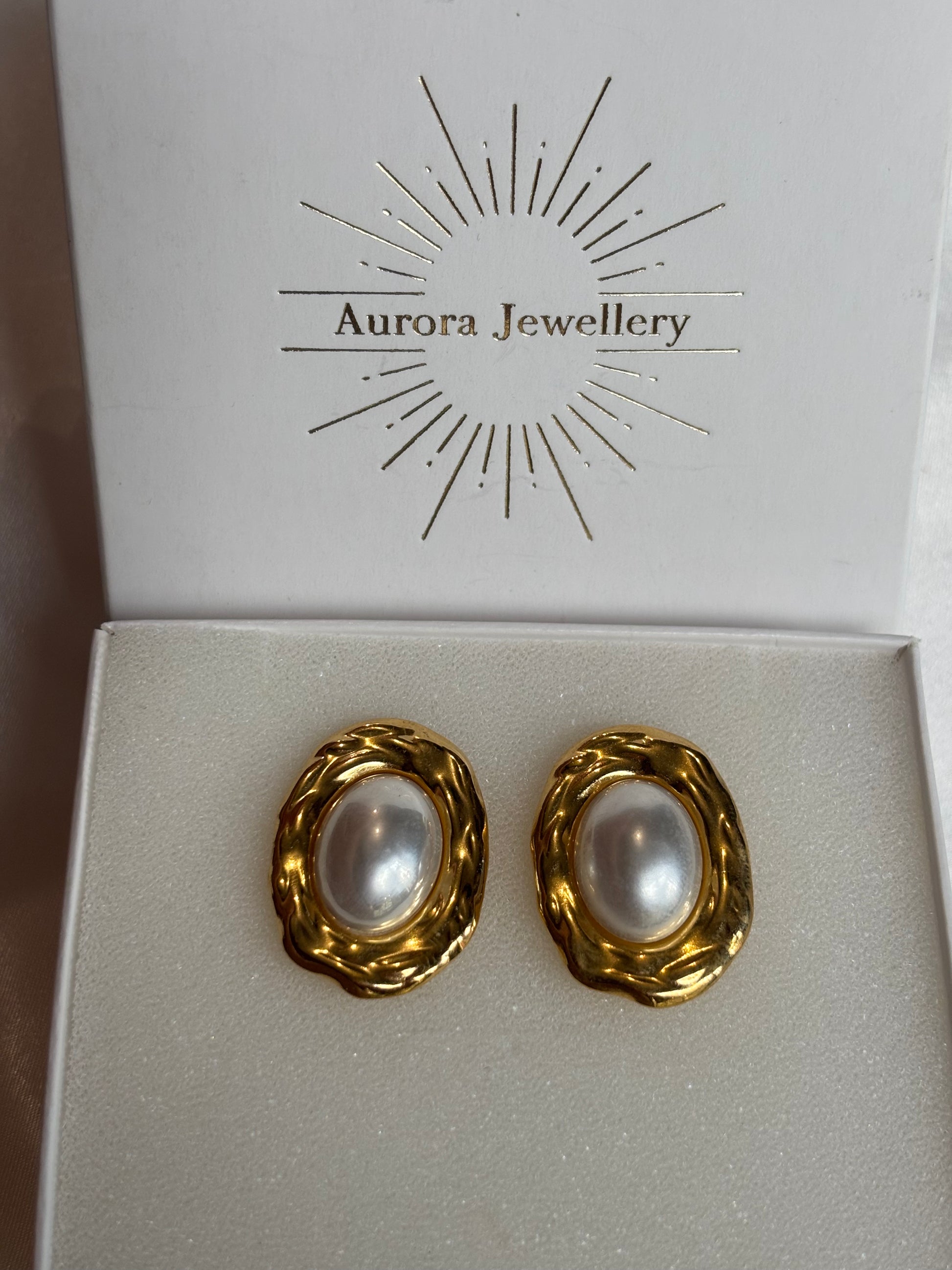 Μεγάλα εντυπωσιακά σκουλαρίκια με μεγάλη κεντρική πέρλα.
