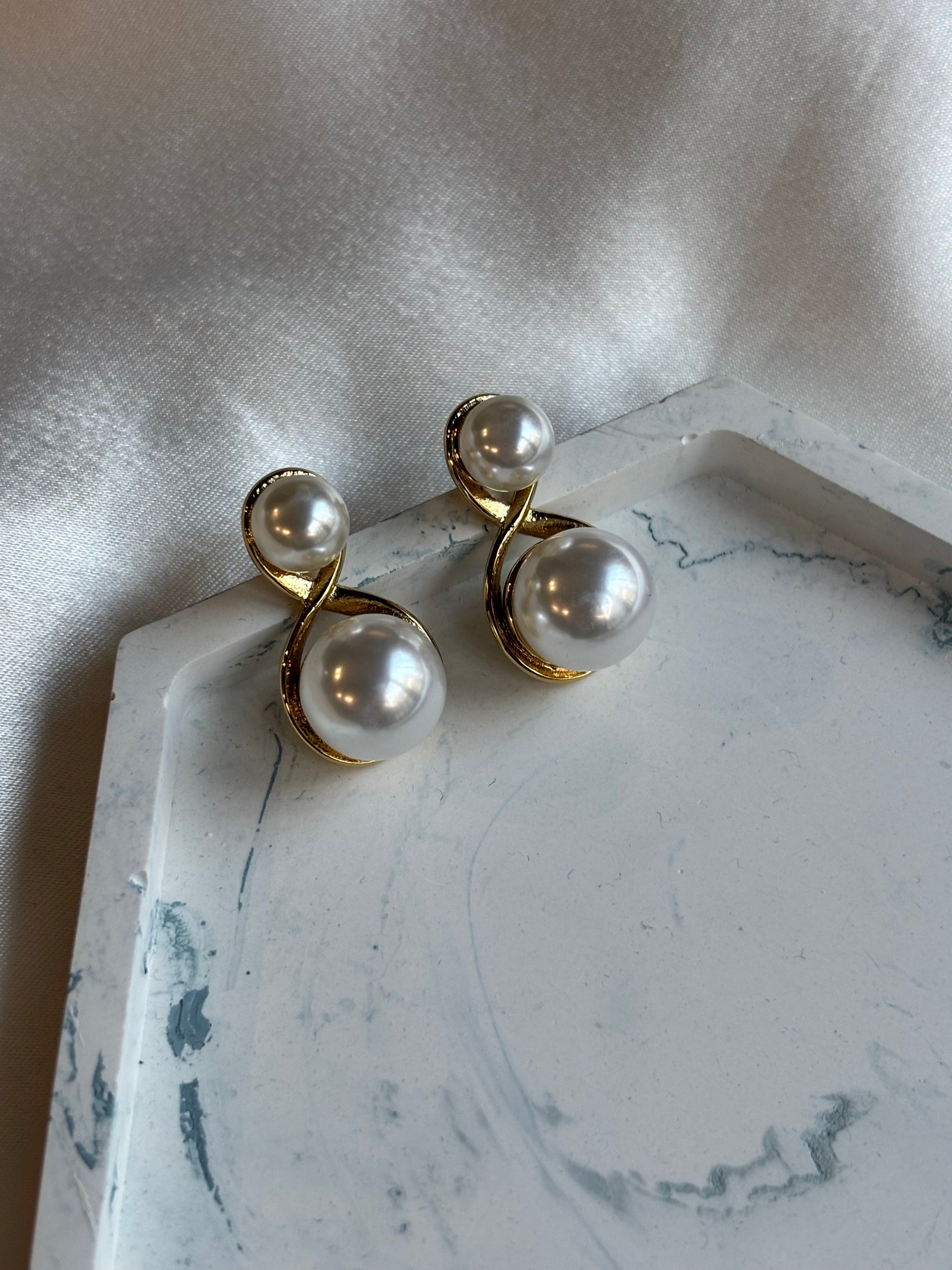 Αριστοκρατικά σκουλαρίκια, καρφωτά με πέρλες πάνω κάτω. Μπορούν να συνδυαστούν υπέροχα με άσπρο πουκάμισο.
