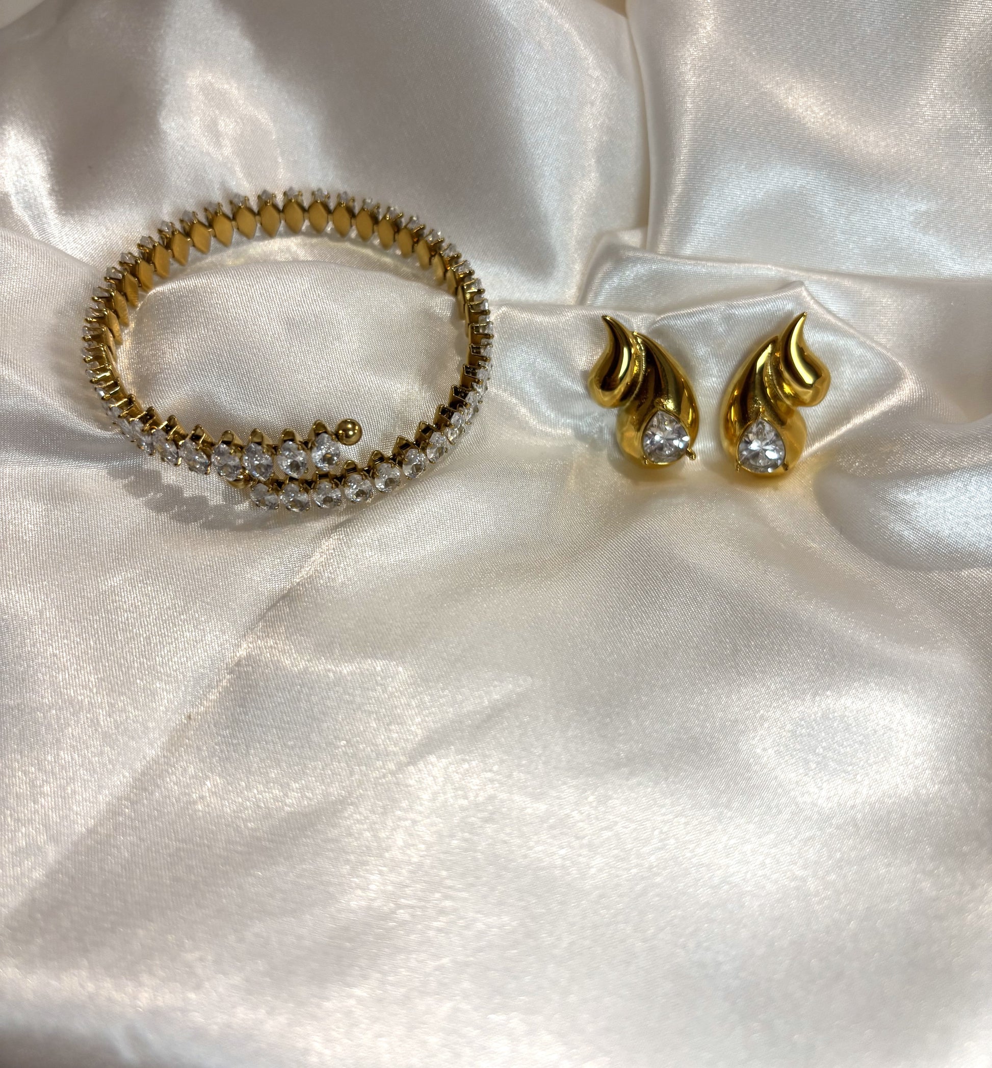 Εντυπωσιακό βραχιόλι με μεγάλα ζιργκόν συνδυασμένα με ιδιαίτερα σκουλαρίκια ,ιδανικά για τις βραδινές σου εμφανίσεις.