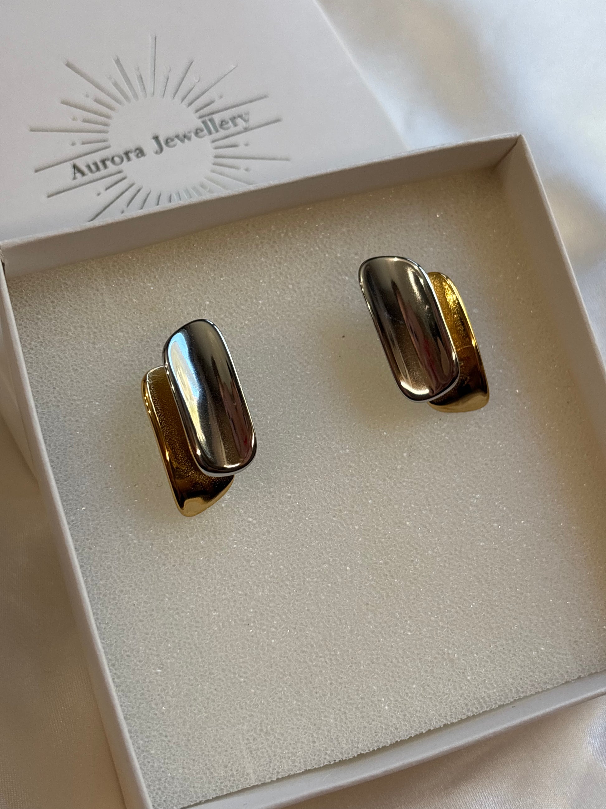 Δίχρωμα σκουλαρίκια, τα οποία μπορείς να συνδυάσεις με ό,τι απόχρωση επιθυμείς.