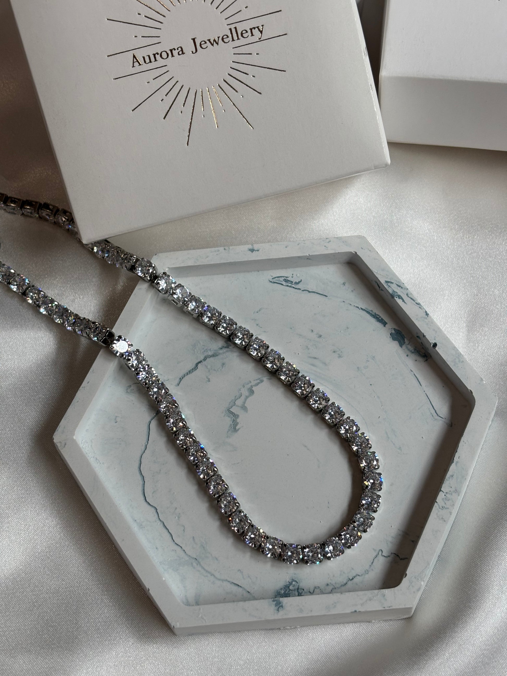 Κολιέ ριβιέρα με ζιργκόν κατά μήκος όλης της αλυσίδας. Ιδανικό για τις νυχτερινές σου εμφανίσεις.