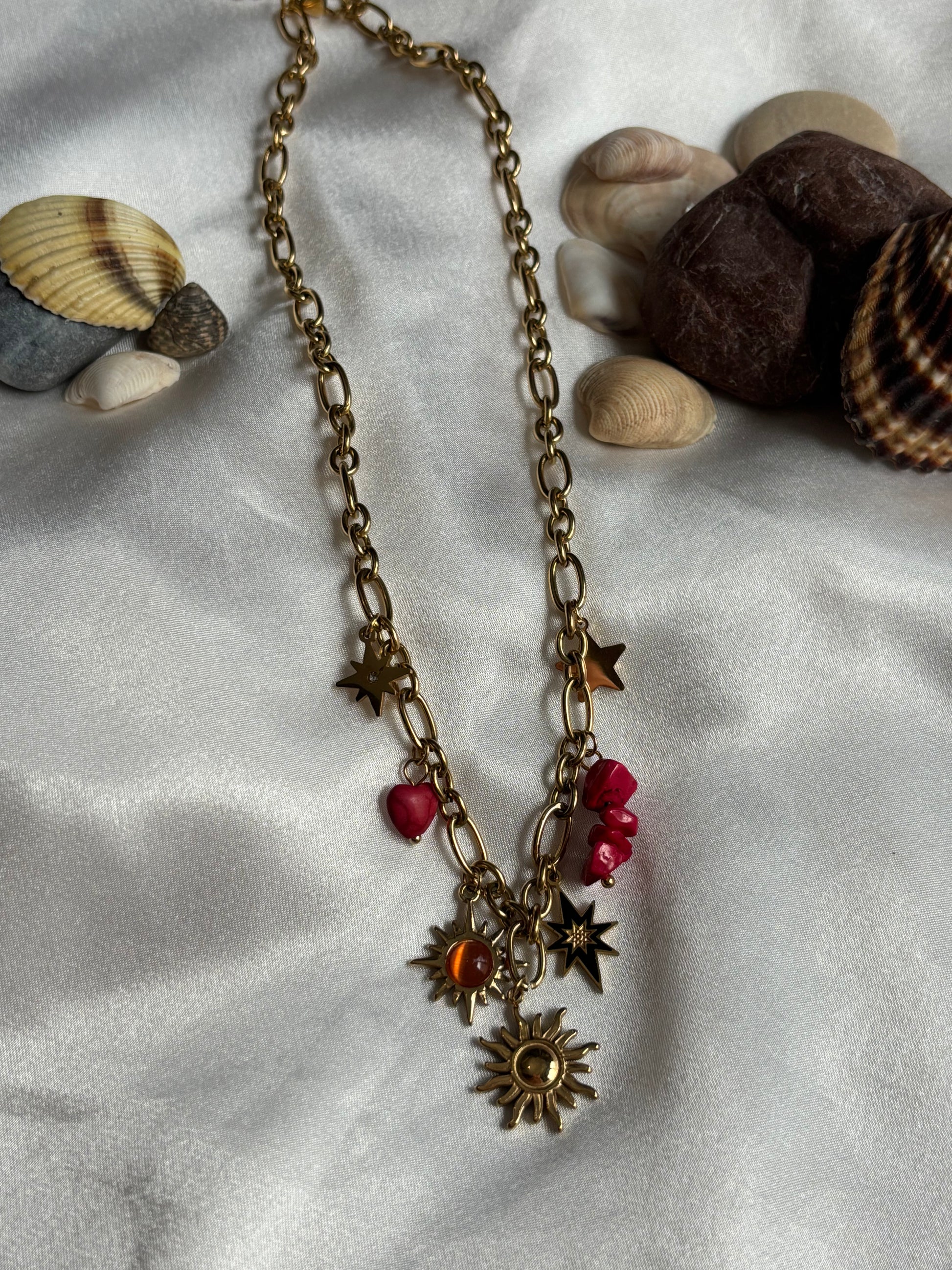 Καλοκαιρινό κολιέ από ανοξείδωτο ατσάλι με διακοσμητικά στοιχεία. Ιδανικό για τις καλοκαιρινές σου εμφανίσεις.
