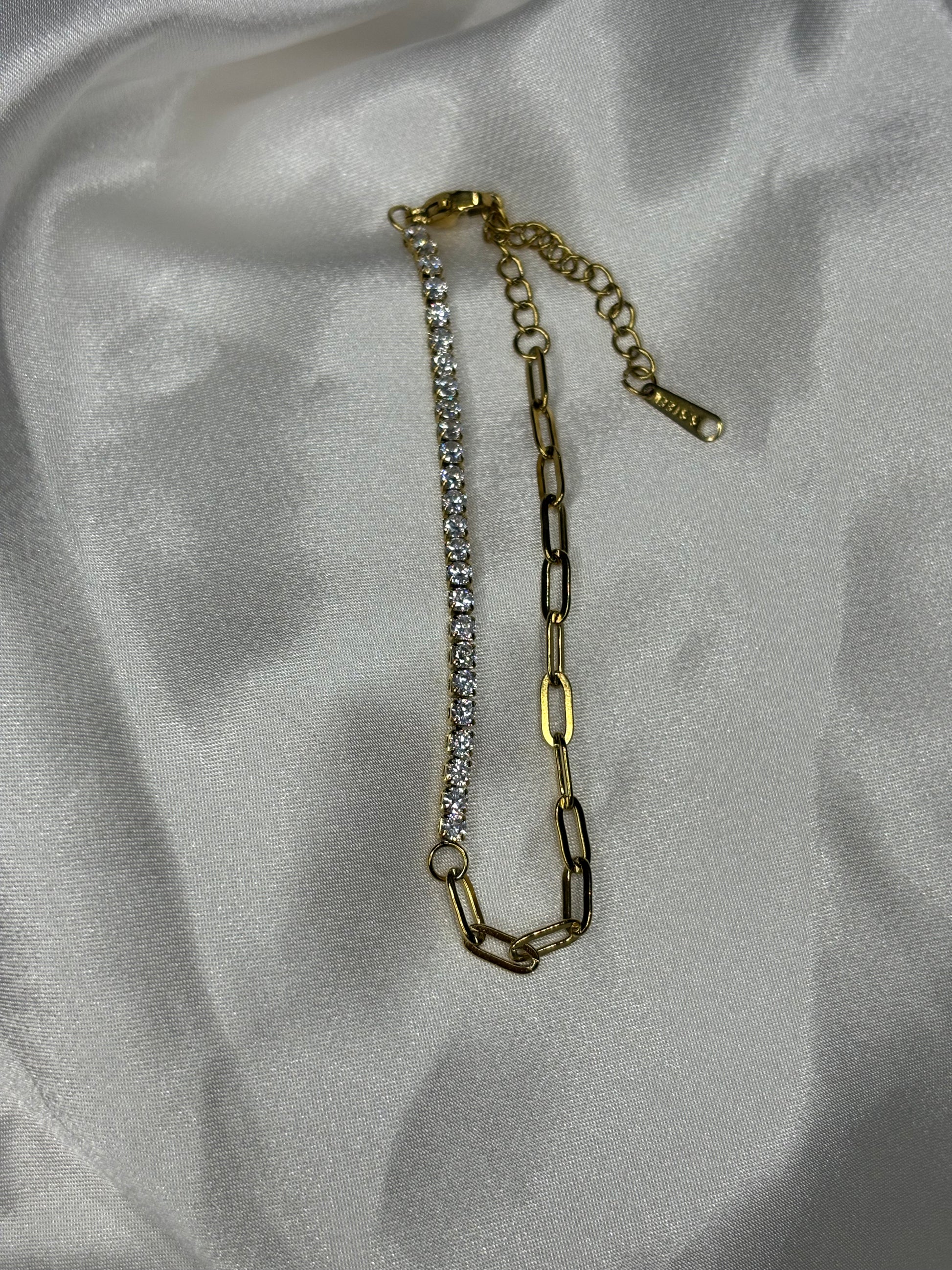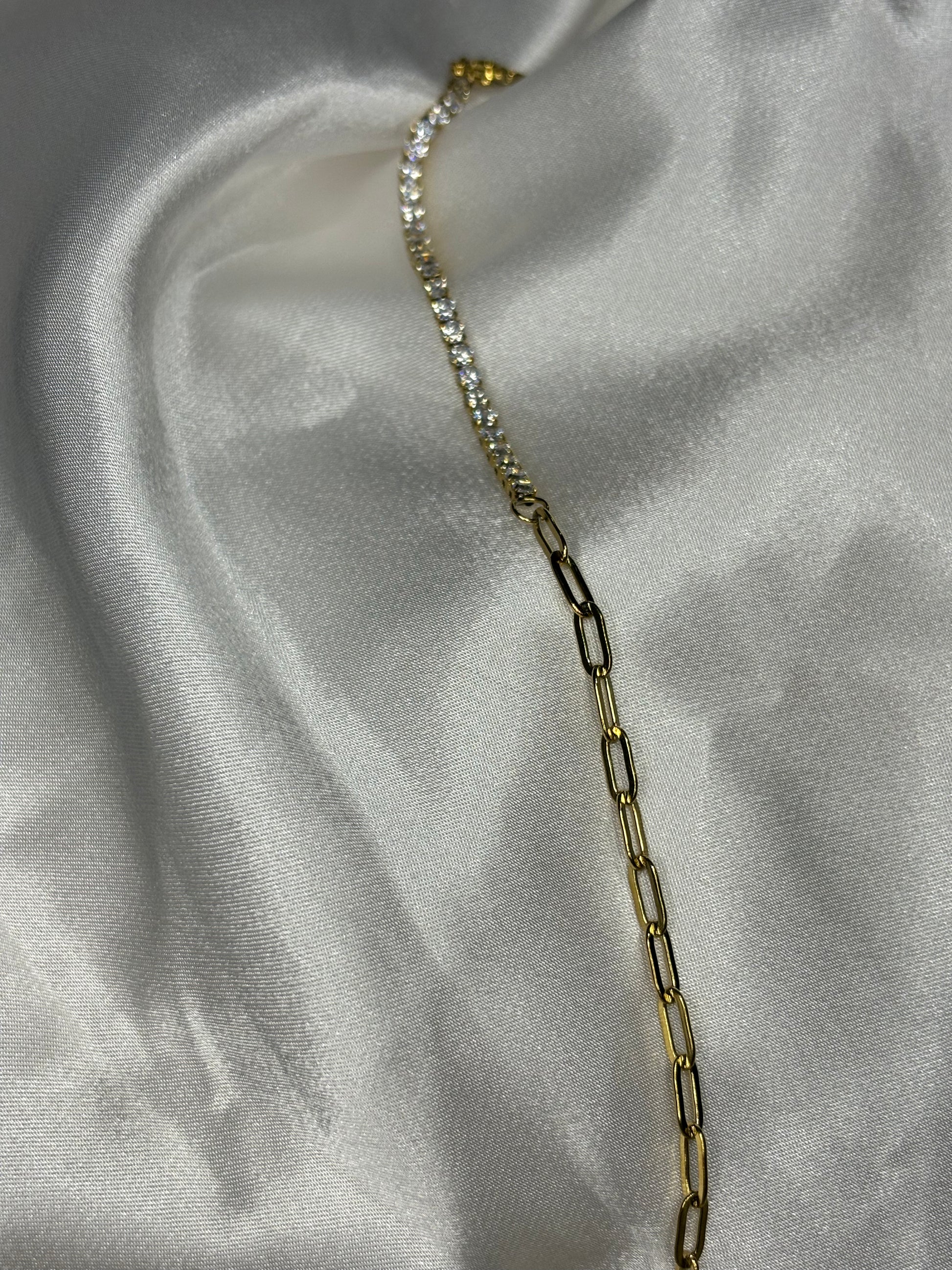 Silvana Χρυσό Βραχιόλι – Μισό Αλυσίδα & Μισό Ζιργκόν