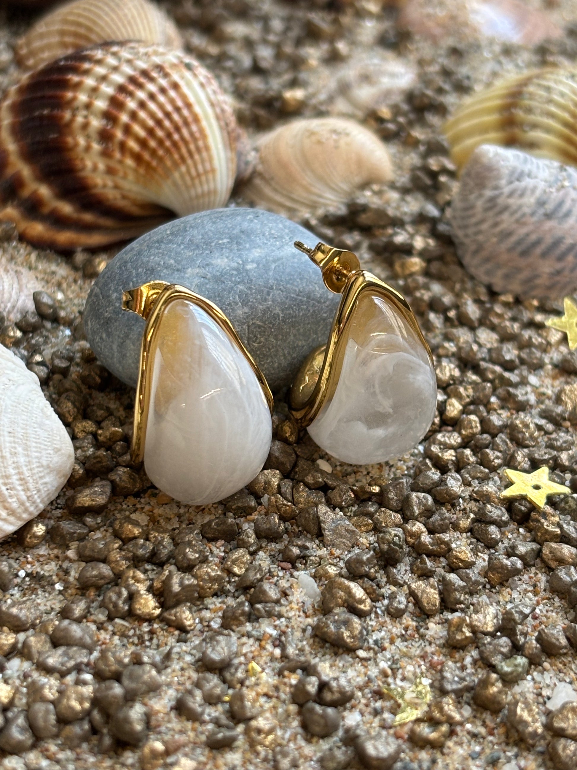 Υπέροχα σκουλαρίκια σε καφέ και λευκή απόχρωση για να τα φοράς από το πρωί μέχρι το βράδυ.