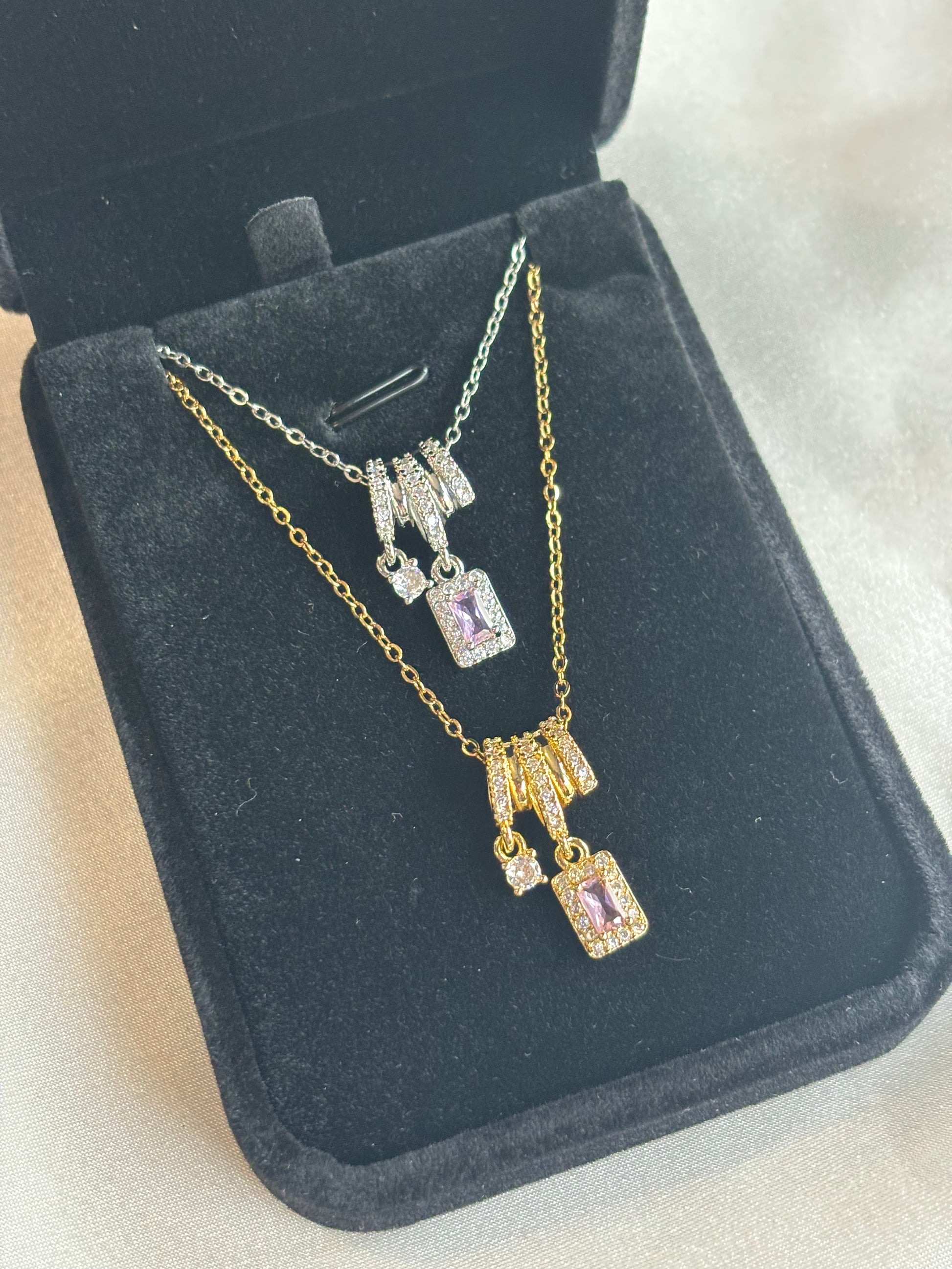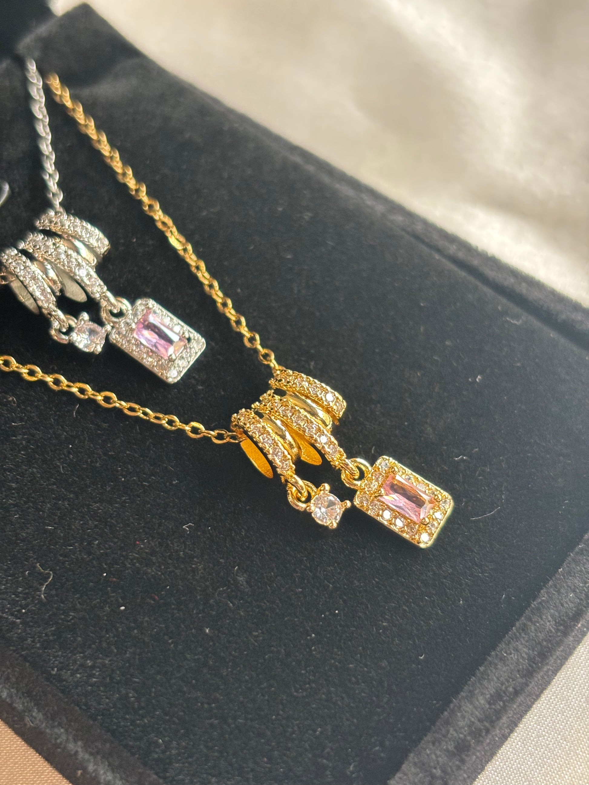 Υπέροχο αλυσιδάκι με διακοσμητικά στοιχεία και ζιργκόν σε λευκή και ροζ απόχρωση.