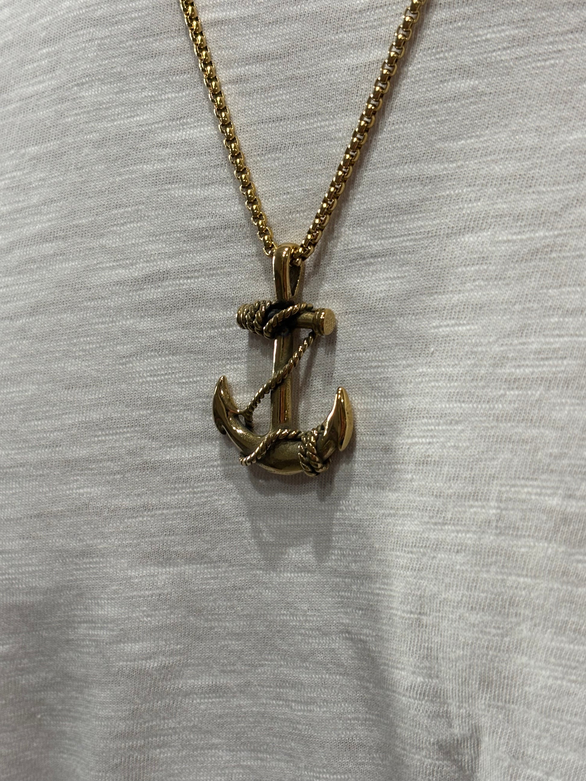 Χρυσή αλυσίδα με διακοσμητικό στοιχείο άγκυρα.
