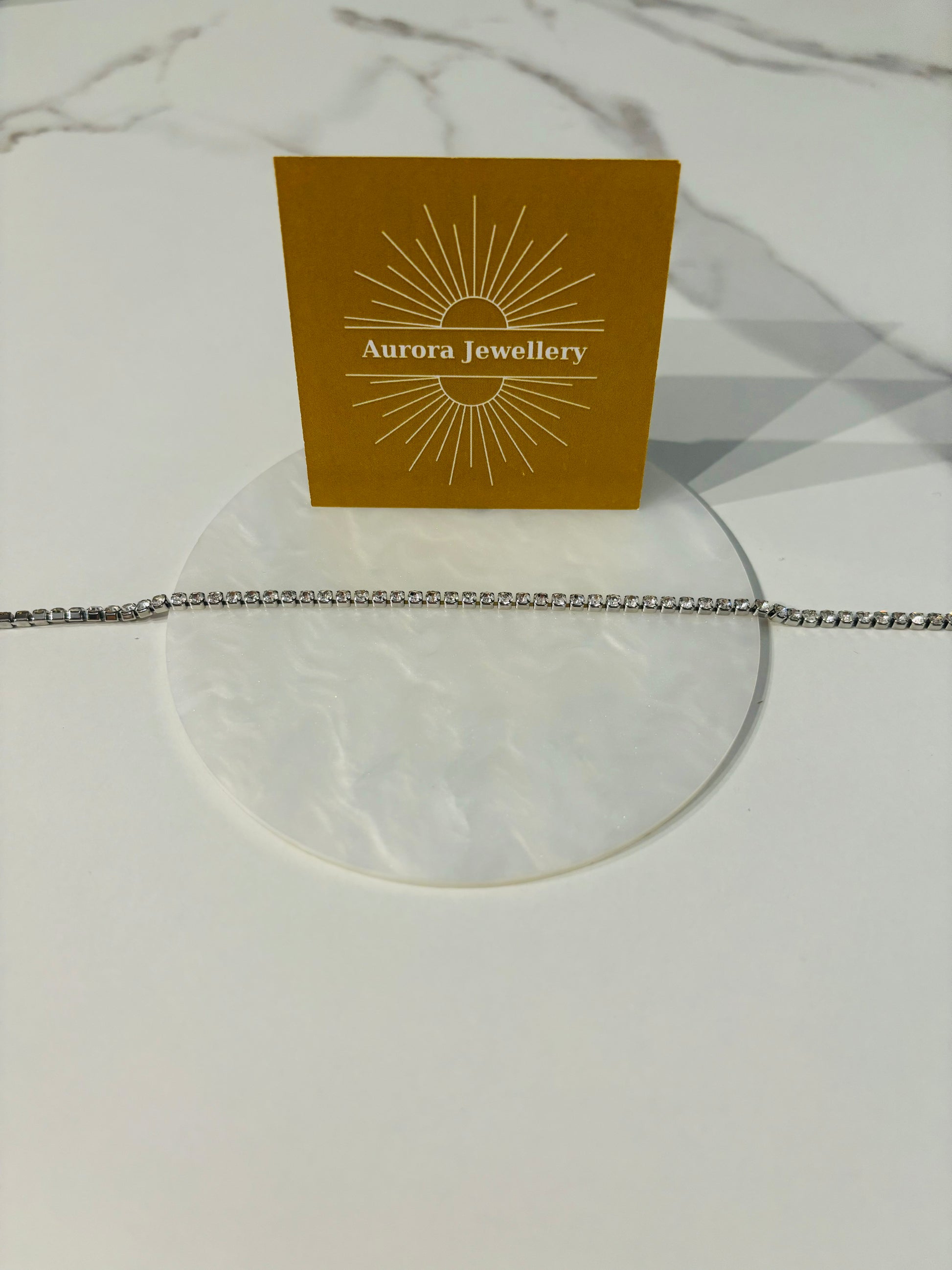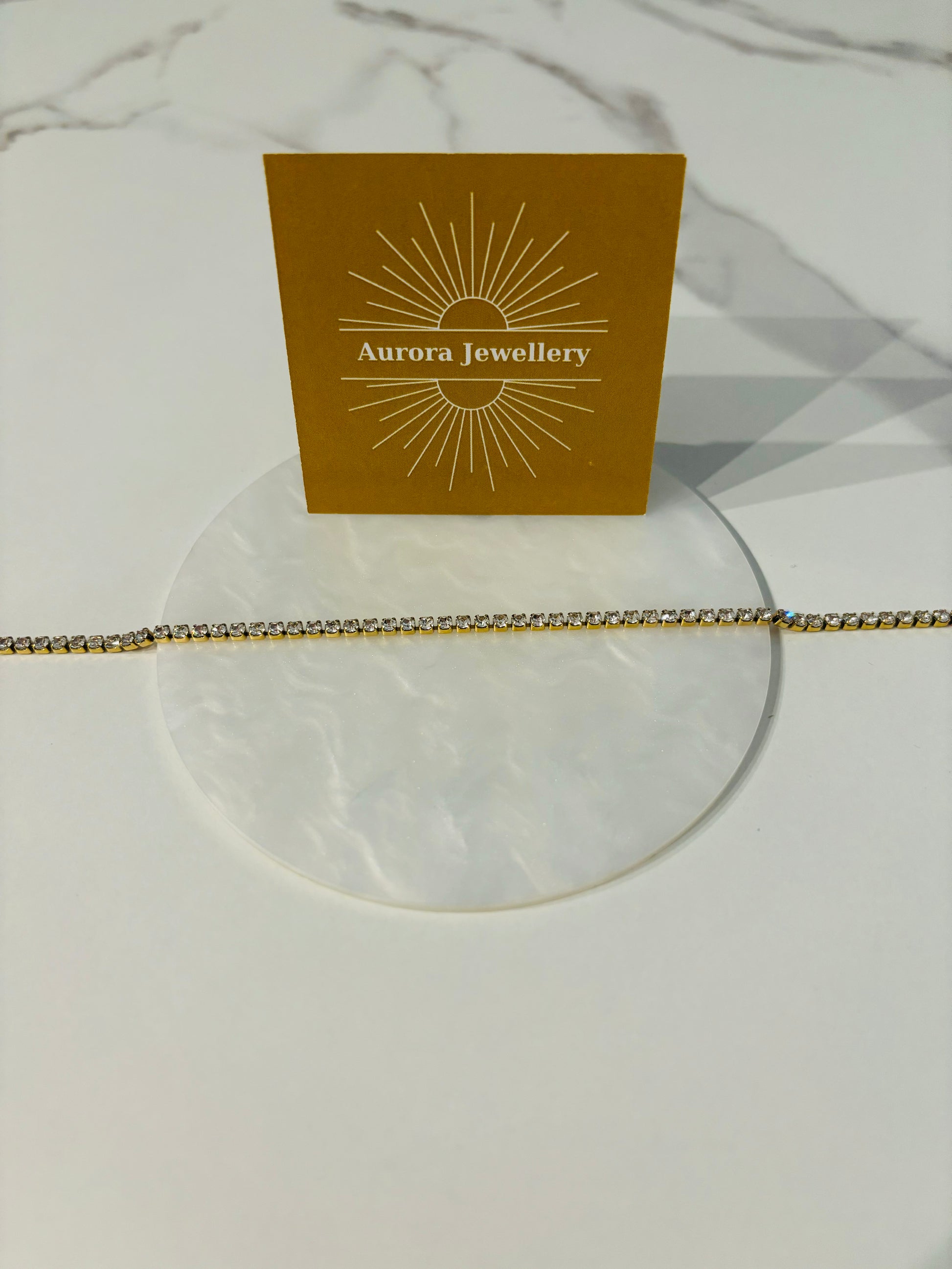 Ατσάλινο βραχιόλι ποδιού σε ασημί και χρυσή απόχρωση με ζιργκόν.